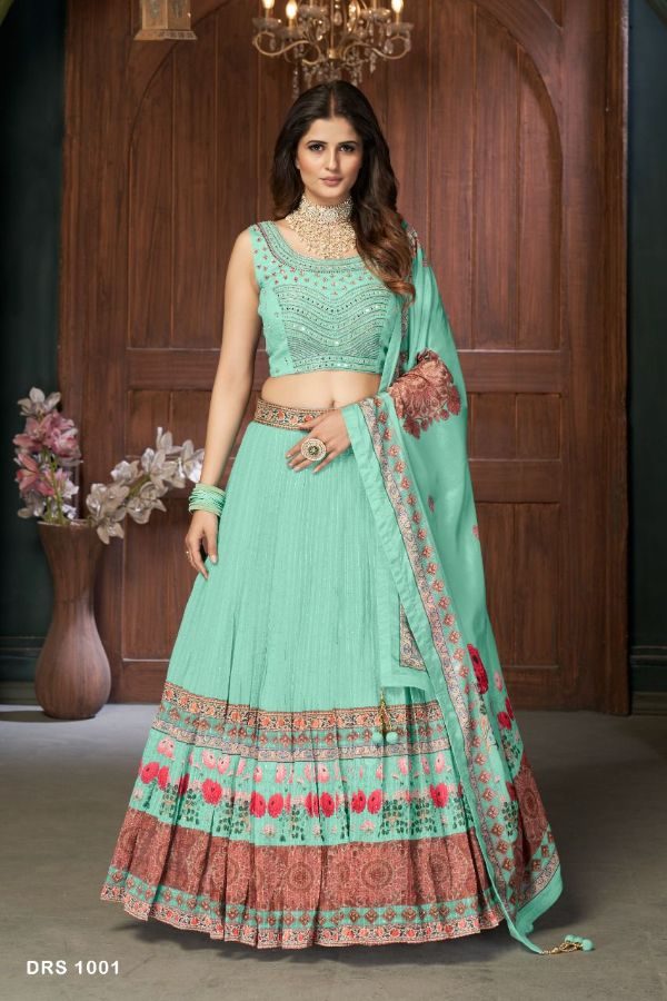 Latest Designer Lehenga Choli Collection. Exclusive with Embroidery Work gives a Fashionable Look, High sensed style and luxury makes you ready for envious glazes and very rich & Royal in the Party, Function, Event etc.