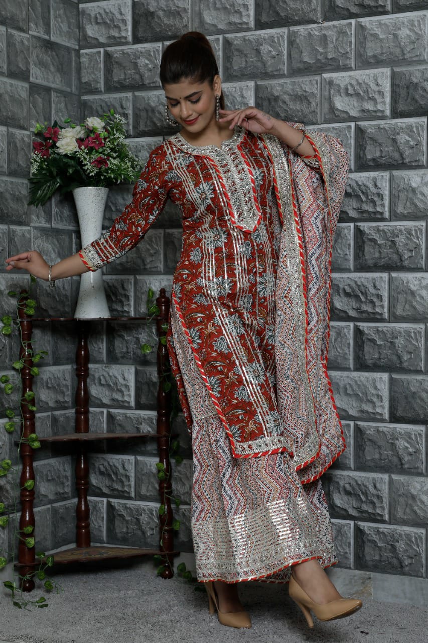 Latest Designer kurti sharara dupatta Collection. Exclusive with Foil & Thread Embroidery Work gives a Fashionable Look, High sensed style and luxury makes you ready for envious glazes and very rich & Royal in the Party, Function, Event etc.