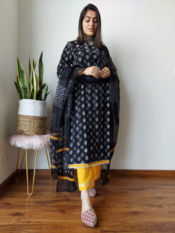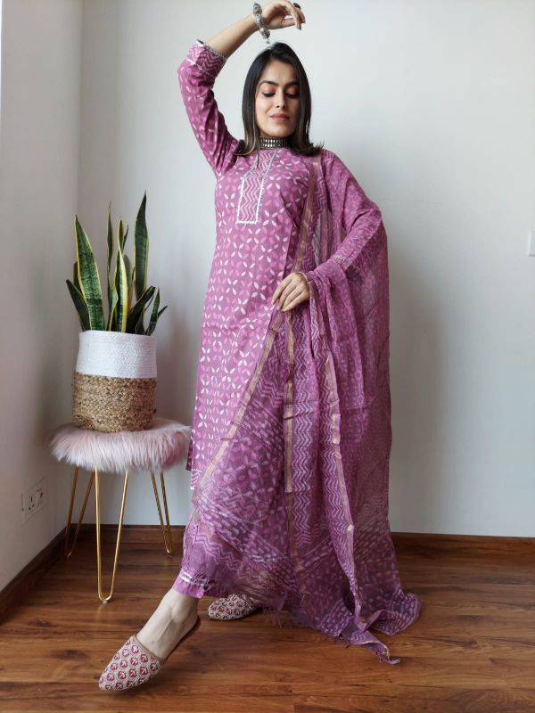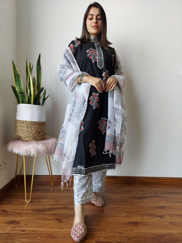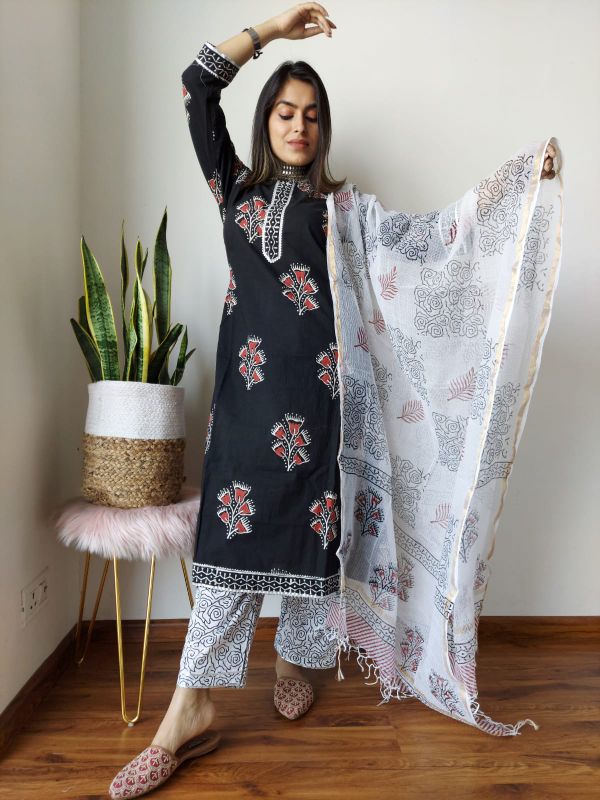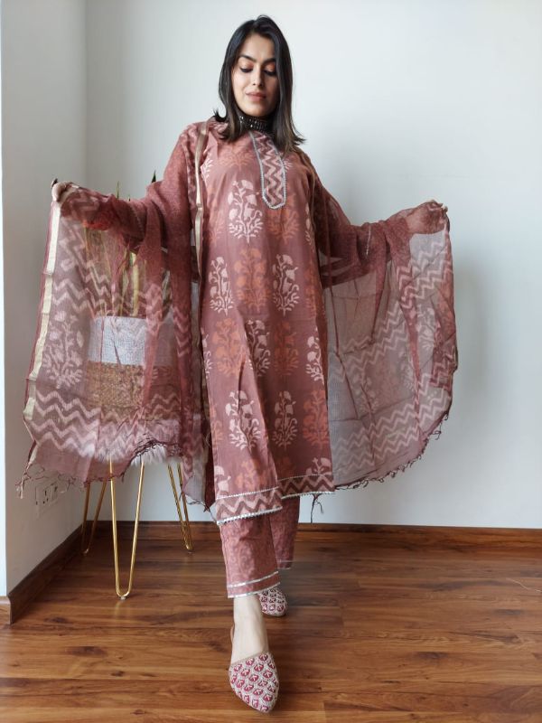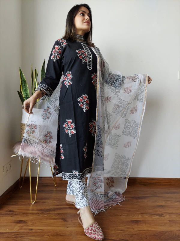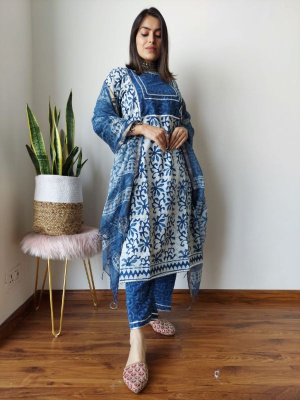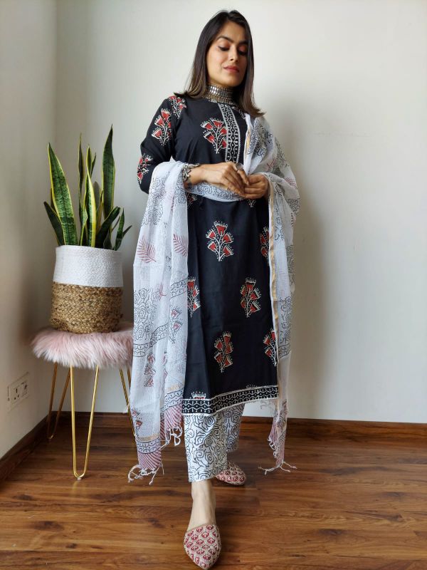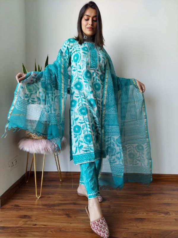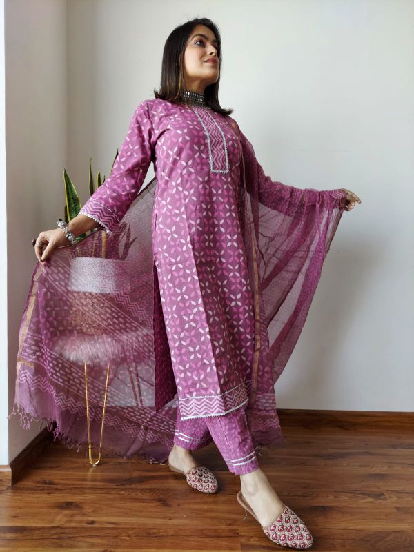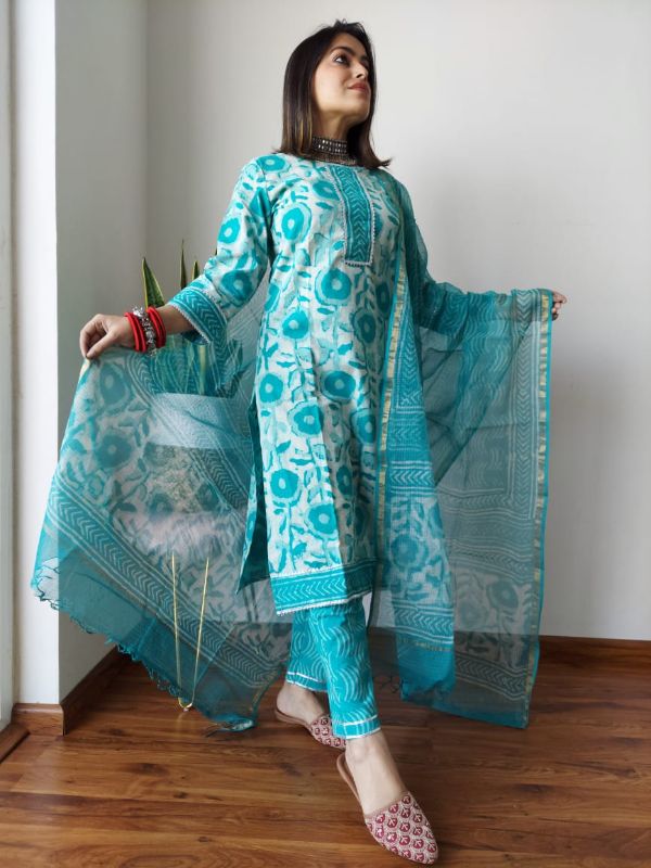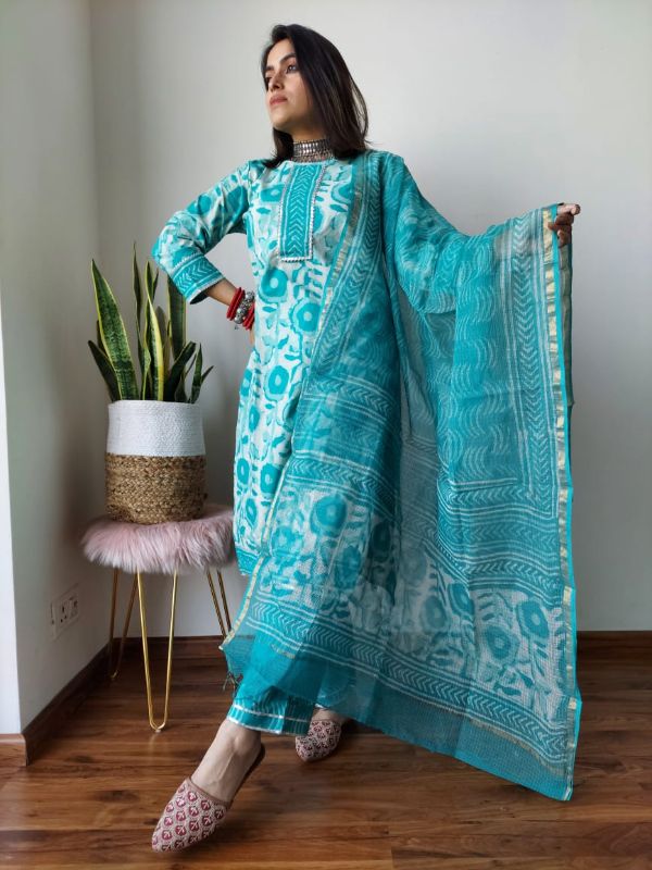 Balaji Emporium Hand Block Printed Stiched Kurtis Suit Set With Kota Doriya Duppatas Collection