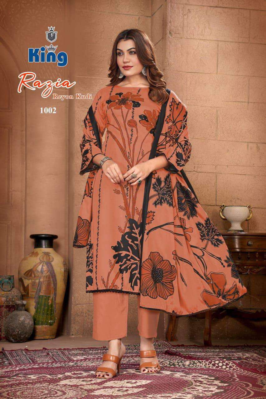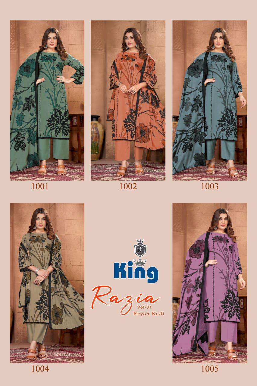 | Catalogue: | Balaji Emporium KING RAZIA VOL 1 Rayon FoiI Printed suit |