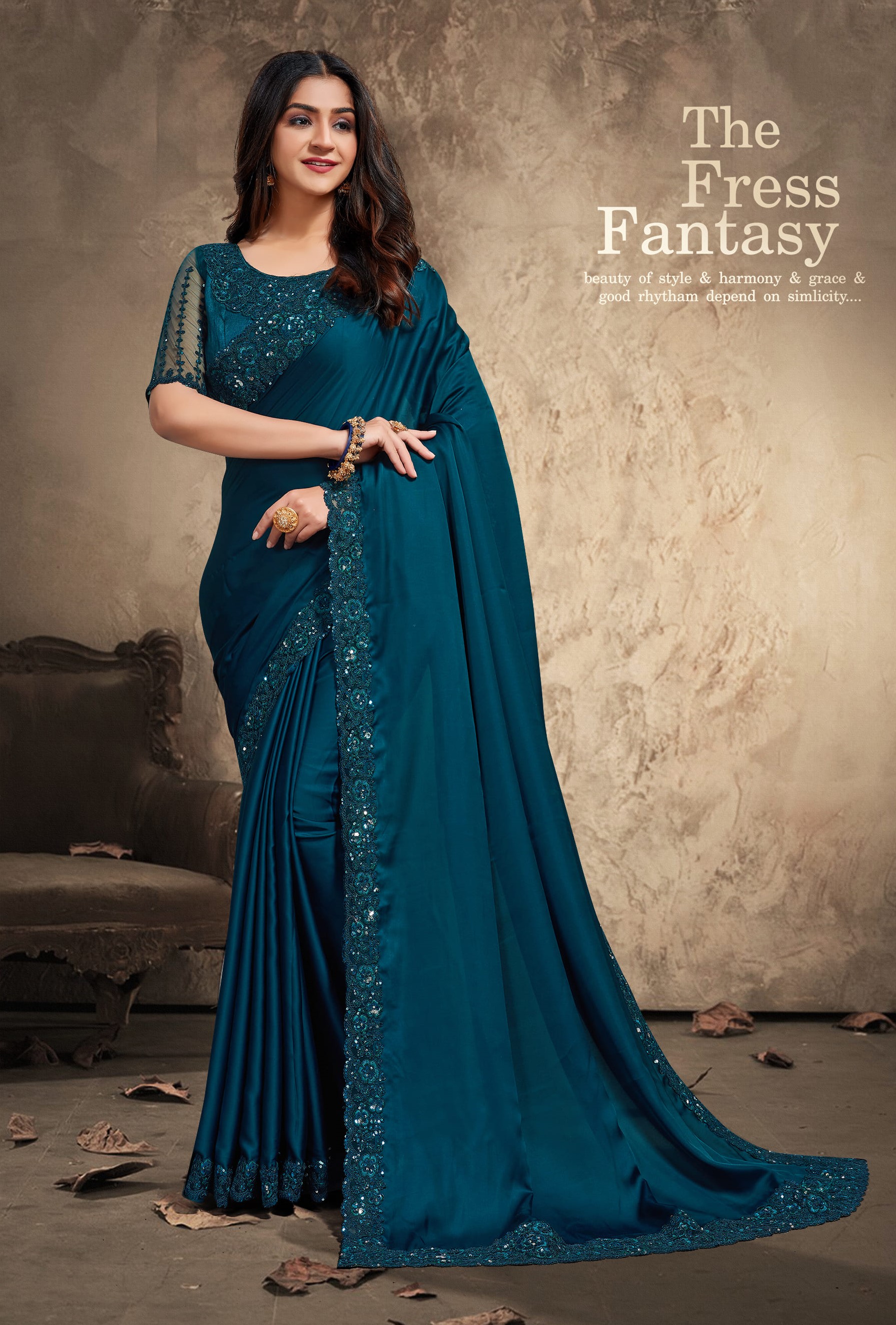 Latest Designer saree Collection. Exclusive with Foil & Thread Embroidery Work gives a Fashionable Look, High sensed style and luxury makes you ready for envious glazes and very rich & Royal in the Party, Function, Event etc.