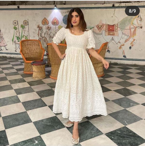 Balaji Emporium Off White Lukhnawi Chikankari Cotton Kurti Collection