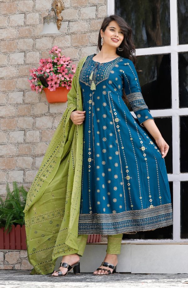 Latest Designer kurti pent dupatta Collection. Exclusive with Foil & Thread Embroidery Work gives a Fashionable Look, High sensed style and luxury makes you ready for envious glazes and very rich & Royal in the Party, Function, Event etc.