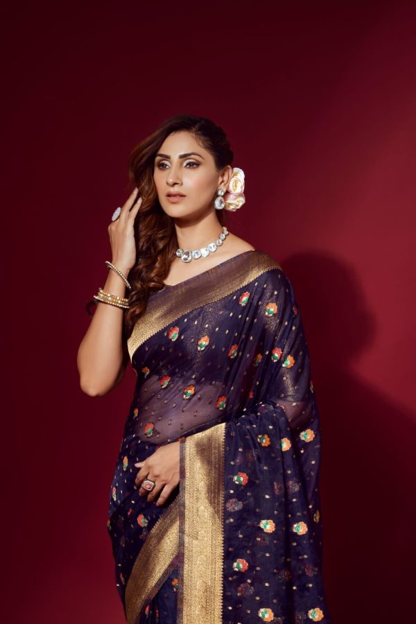 Latest Traditional Wear Saree Collection. Exclusive with Embroidery Work gives a Fashionable Look, High sensed style and luxury makes you ready for envious glazes and very rich & Royal in the Party, Function, Event etc.