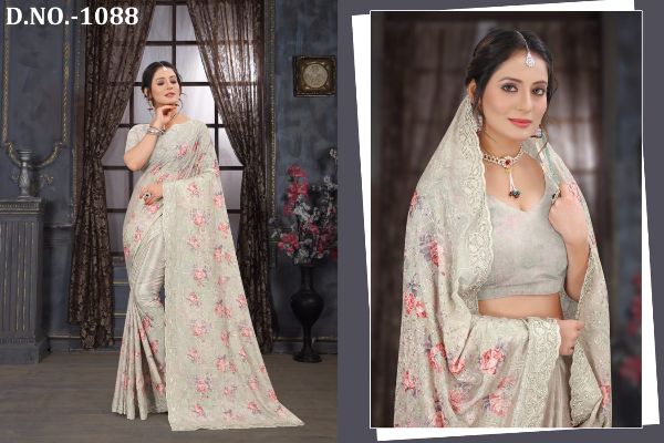 Latest Designer saree Collection. Exclusive with Foil & Thread Embroidery Work gives a Fashionable Look, High sensed style and luxury makes you ready for envious glazes and very rich & Royal in the Party, Function, Event etc.