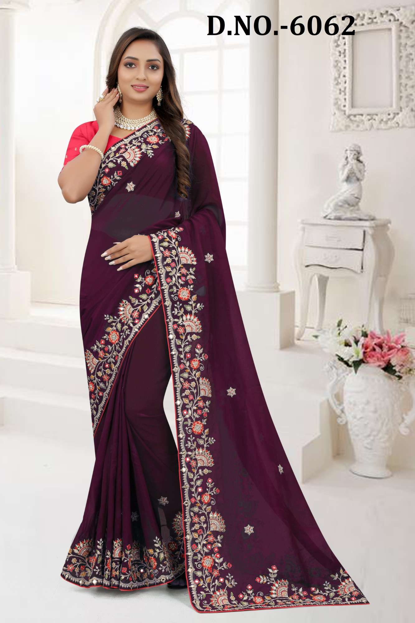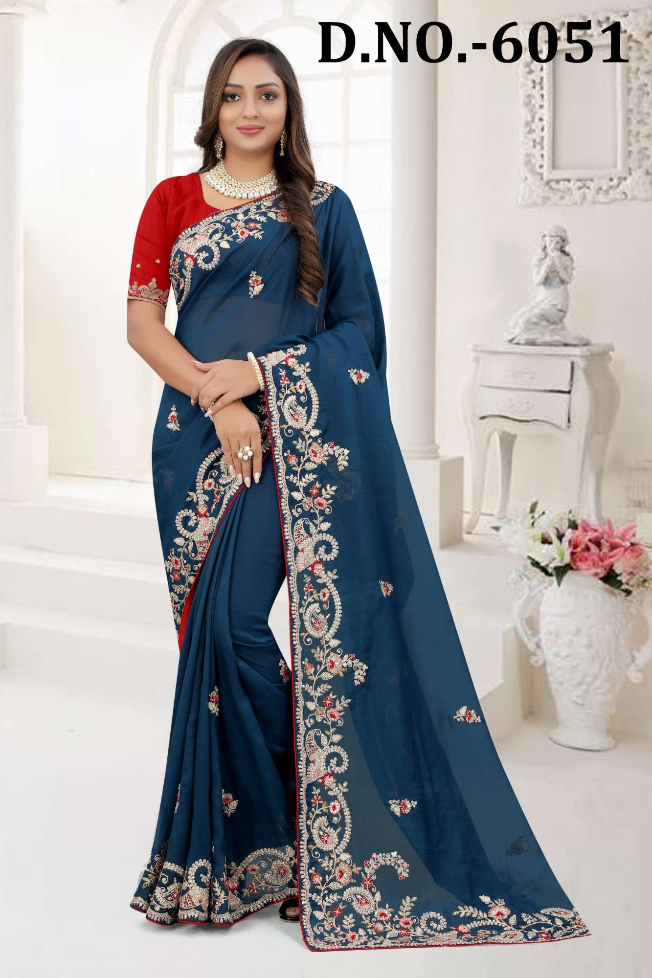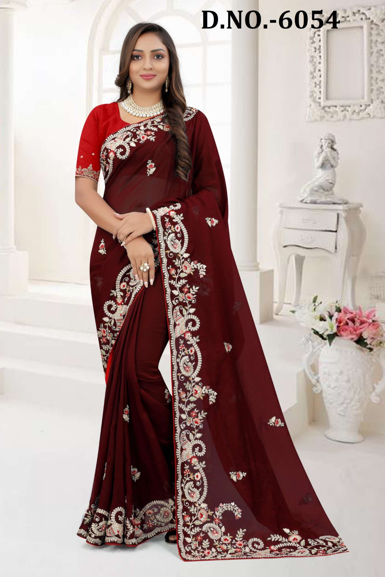 BALAJI EMPORIUM PRESENTS AURA DNO 6052- 6062 INDIAN WOMEN DESIGNER ORGANZA HEAVY EMBROIDERY PARTY WEDDING WEAR SAREE COLLECTION