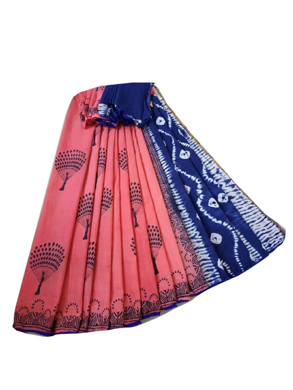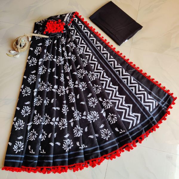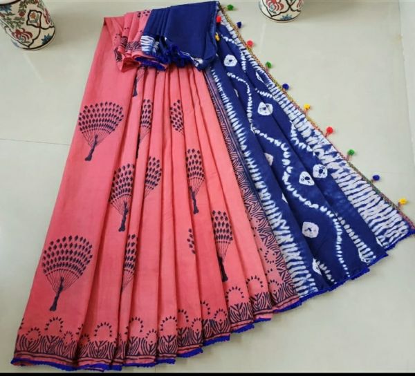 Balaji Emporium Presents Beautiful Handblock Printed Pure Cotton Mulmul Sarees With Blouse Piece Fancy Saree Collection