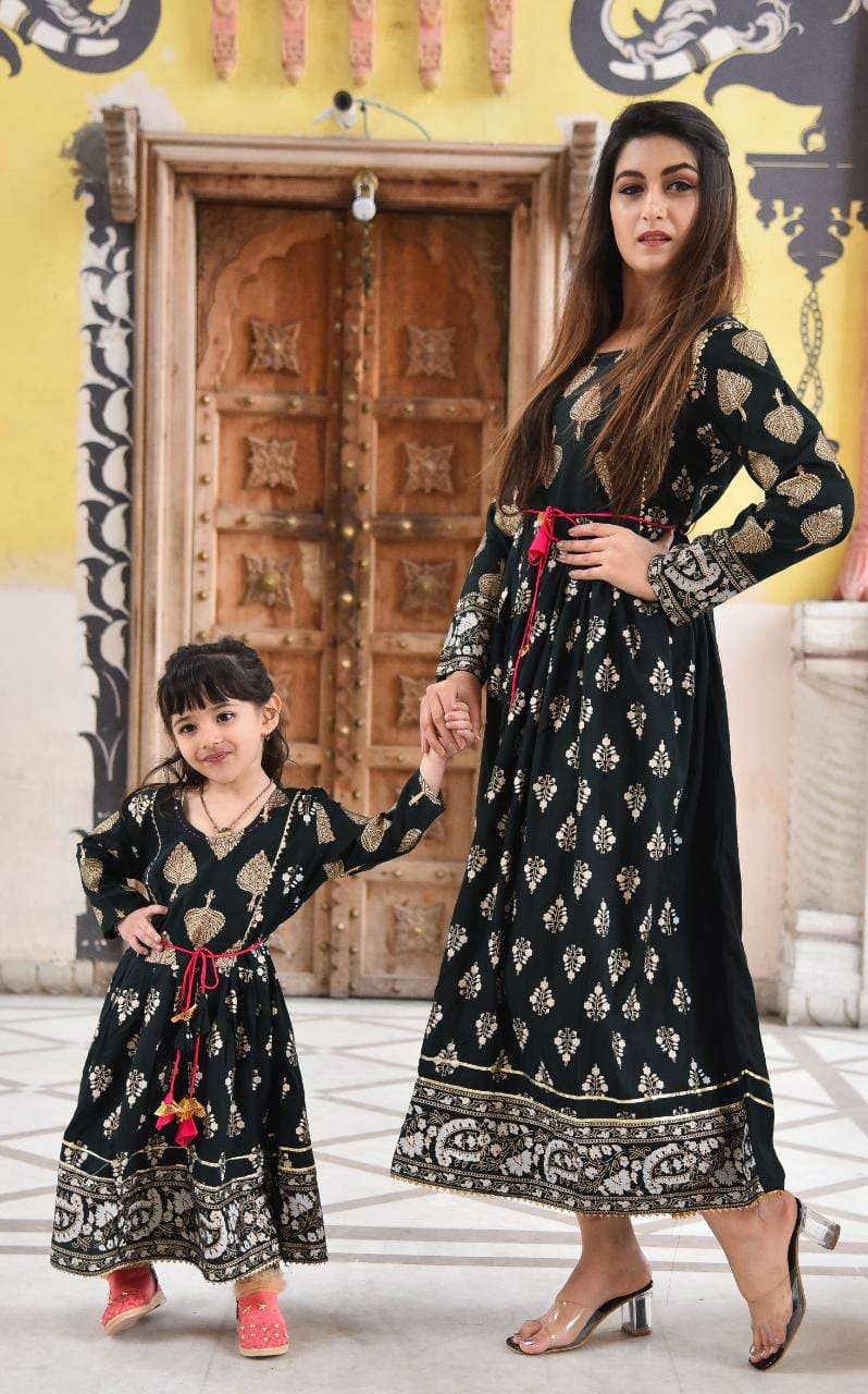 BALAJI EMPORIUM PRESENTS BLACK MOTHHER DAUGHTER ANARKALI RAYON KURTI SUIT CASUAL TRADITIONAL WEAR COLLECTION 462U