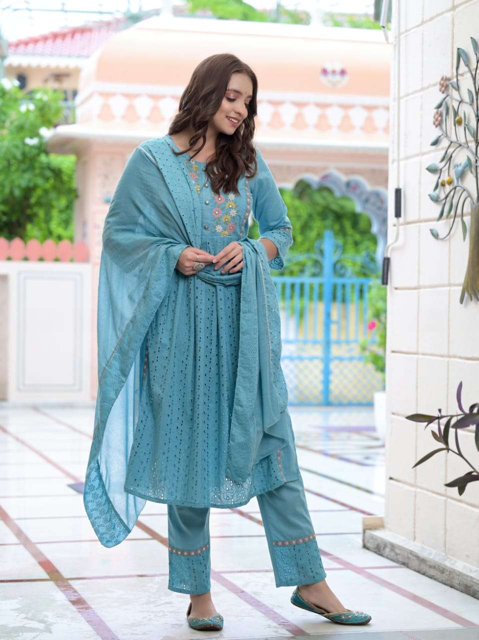 BALAJI EMPORIUM PRESENTS BLUE ANARKALI STYLE INDIAN WOMEN KURTI PANT SET TRADITIONAL ETHNIC FESTIVE DIWALI WEAR COLLECTION 417V