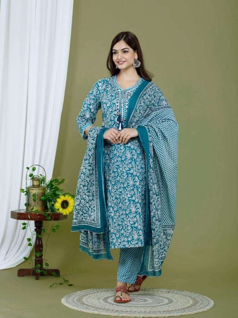 BALAJI EMPORIUM PRESENTS BLUE INDIAN WOMEN DESIGNER STRAIGHT SALWAR KAMEEZ SUIT CASUAL FESTIVE TRADITIONAL WEAR COLLECTION 485U