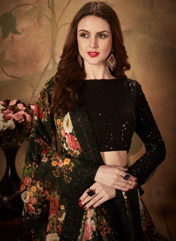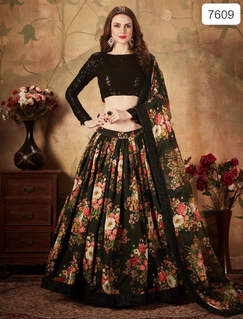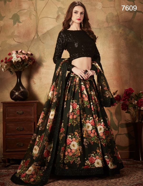 Balaji Emporium Presents Code -7609 Organza Work Floral Digital Print Party Wear Lehenga Collection