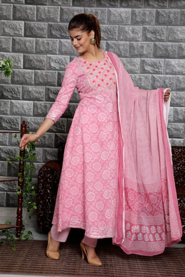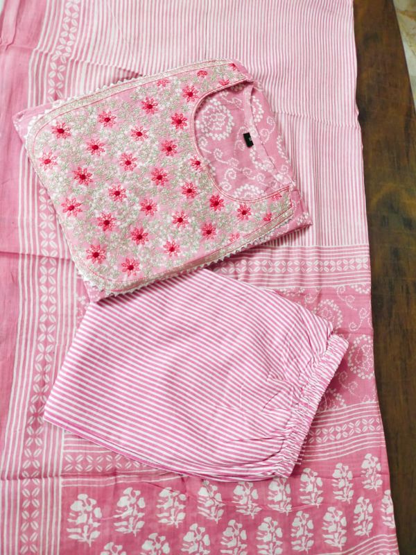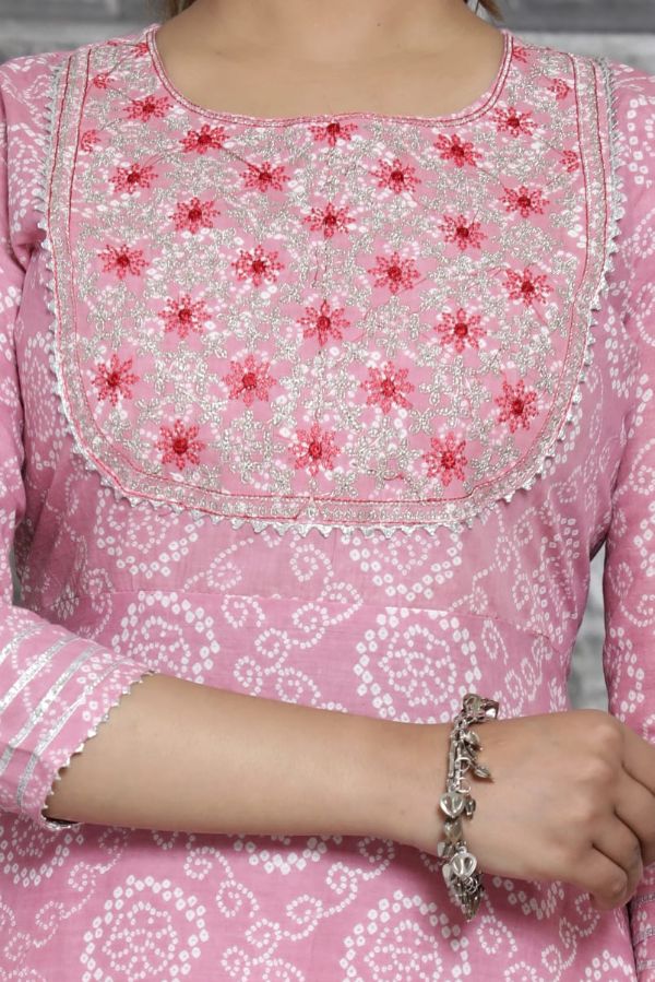 Balaji Emporium Presents Cotton Bandhani Foil Printed Kurti Pent With Dupatta Collection