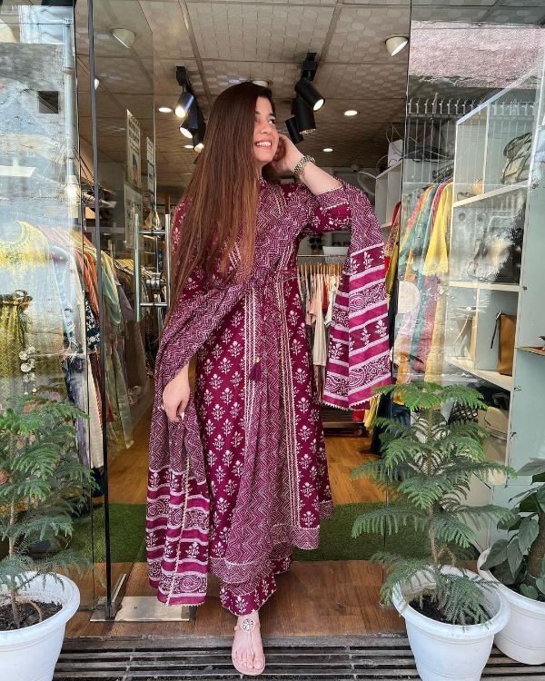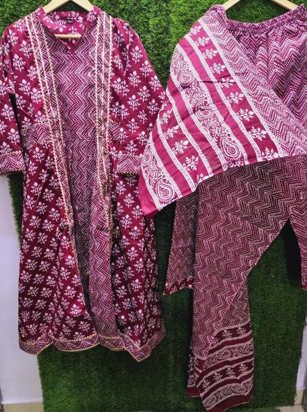 *TRADITIONAL BAGRU PRINT PURE COTTON JACKET ATTACHED KURTI WITH BEAUTIFUL TASSLES DORI TO ADJUST WAIST FITTING PAIRED WITH MATCHING PLAZZO WITH DUPATTA*