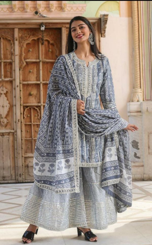 Balaji Emporium Presents Cotton Printed Kurti With Printed Sharara And Malmal Dupatta Collection