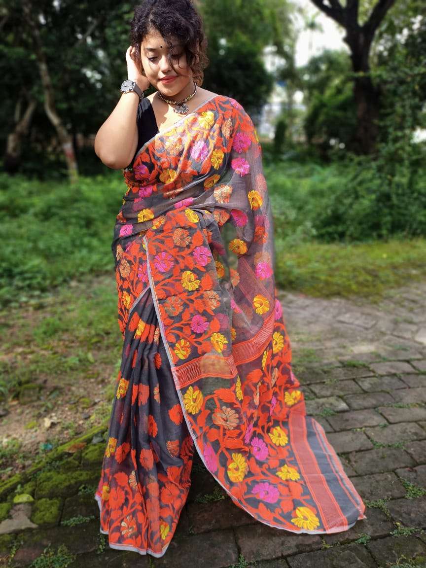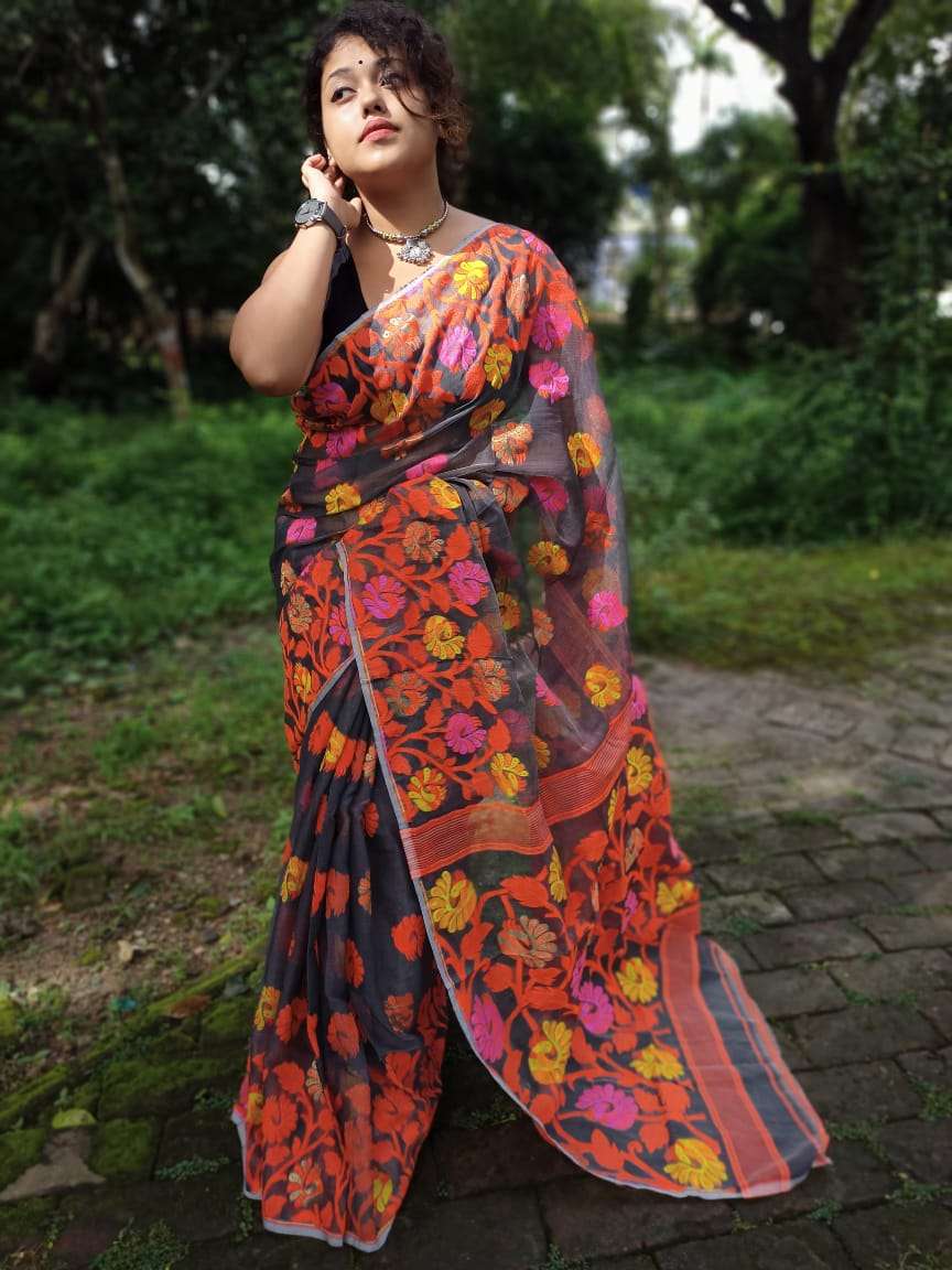 FABRIC: Saree: Peacock Dhakai