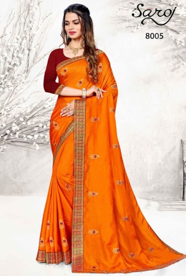 Latest Traditional Wear Saree Collection. Exclusive with Embroidery Work gives a Fashionable Look, High sensed style and luxury makes you ready for envious glazes and very rich & Royal in the Party, Function, Event etc.