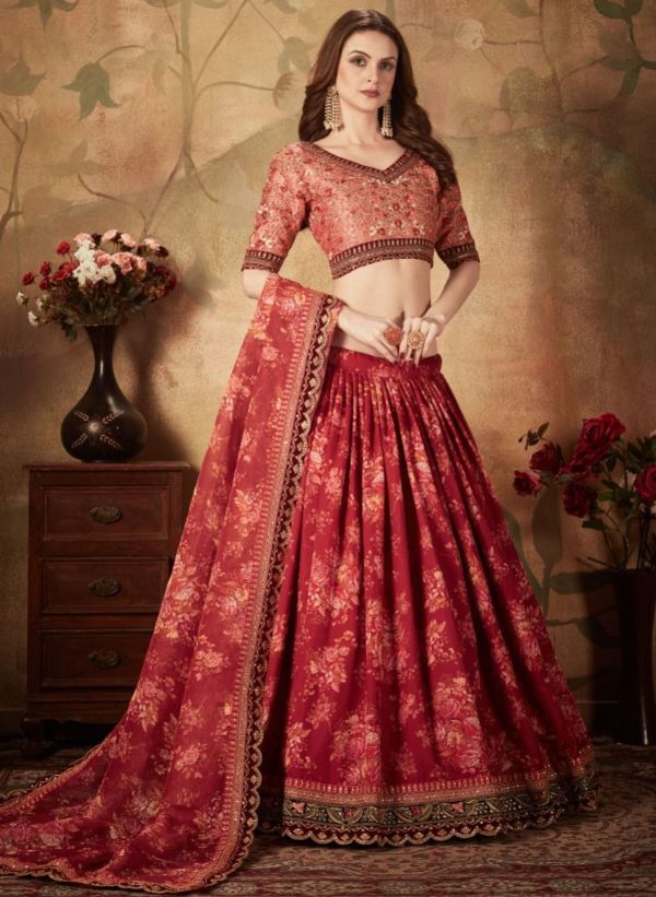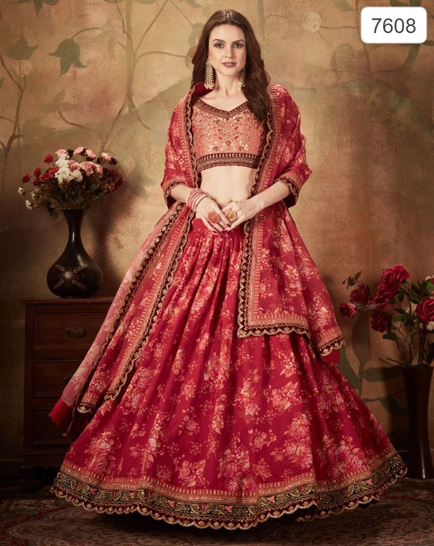 Balaji Emporium Presents Dn-7608 Organza With Floral Digital Print Lehenga Collection