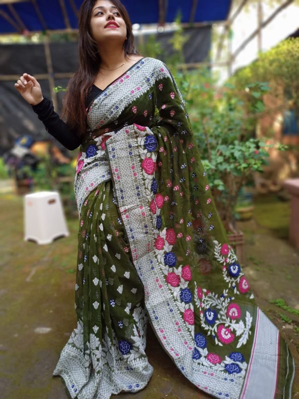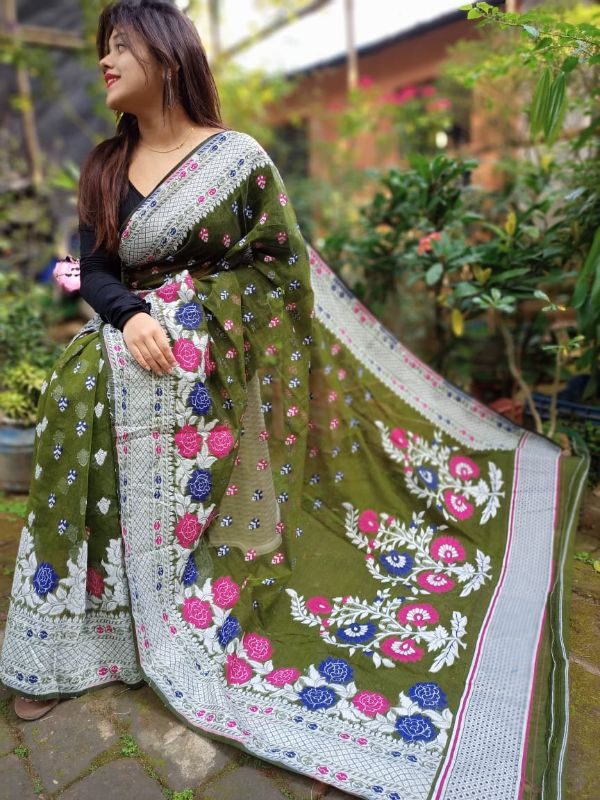 Latest Traditional Wear Handloom Saree Collection. Exclusive with Embroidery Work gives a Fashionable Look, High sensed style and luxury makes you ready for envious glazes and very rich & Royal in the Party, Function, Event etc.