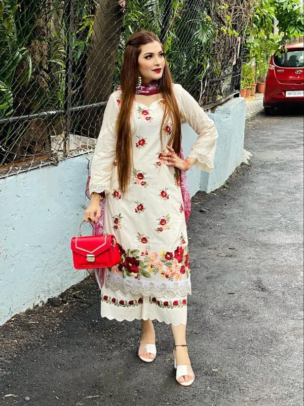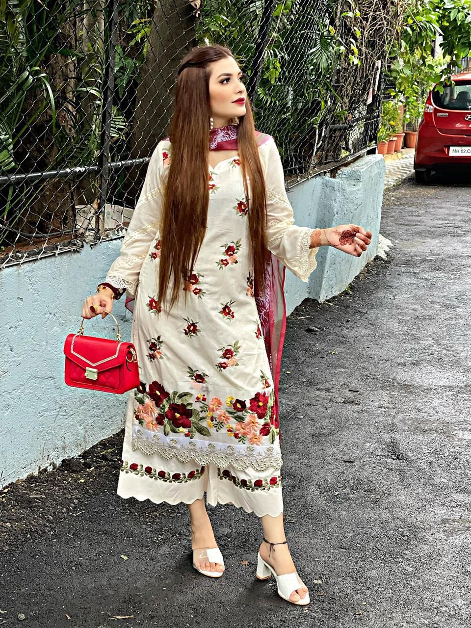 Fabric: TOP : PURE CAMBRIC COTTON WITH HEAVY EMBROIDERY WORK