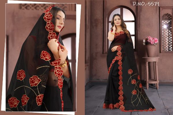 Balaji Emporium Presents Dream Rose 5571-5585 Series Beautiful Jari Embroidery Work Party Wear Saree Collection