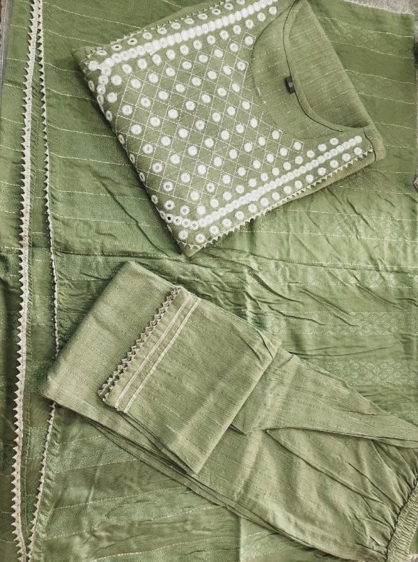 Fabric: "Lurex fabric kurti pant paired with matching heavy work chanderi Duppatta