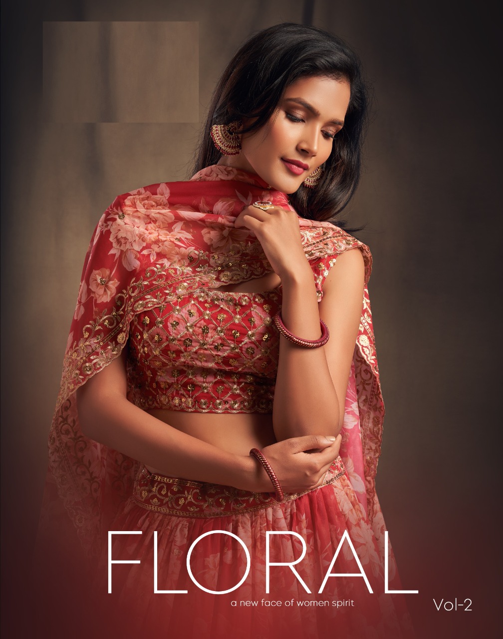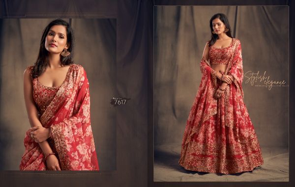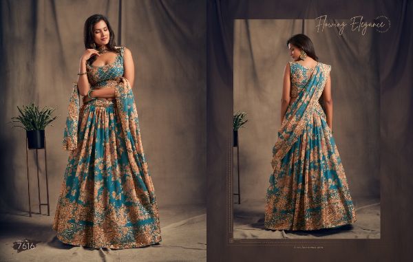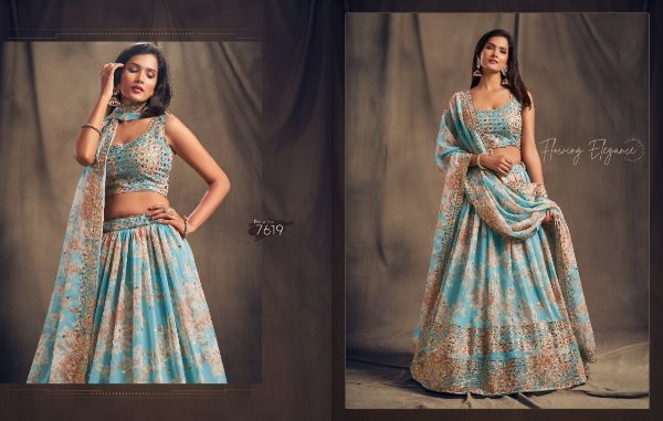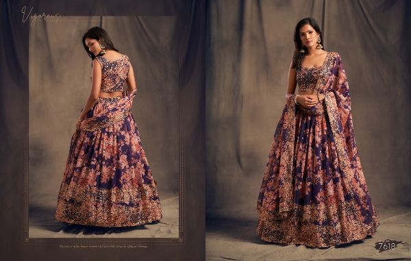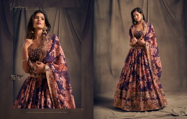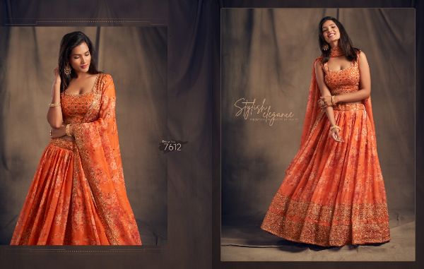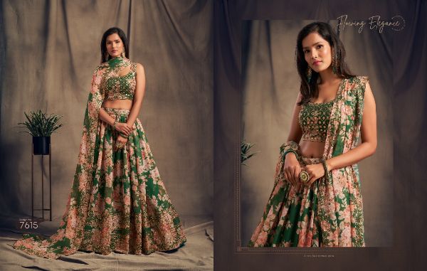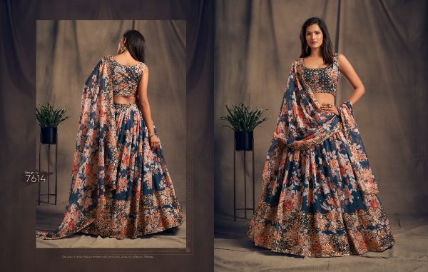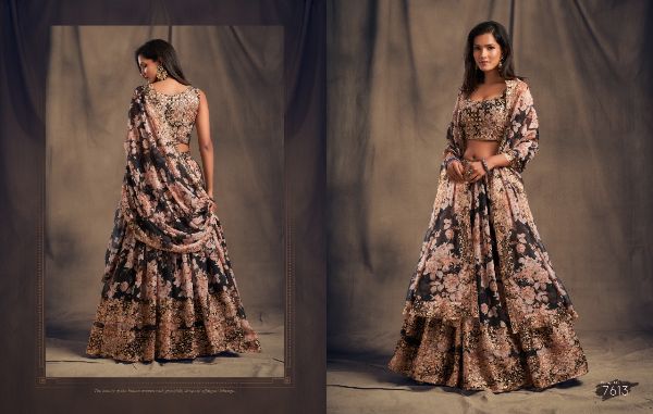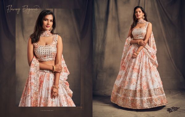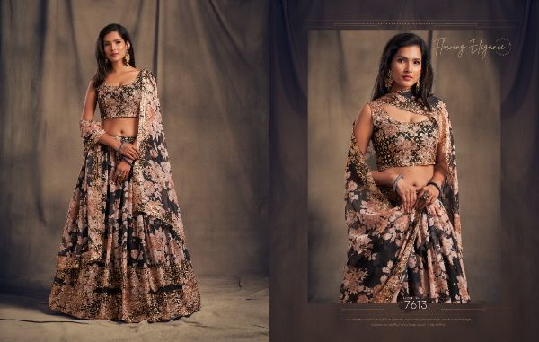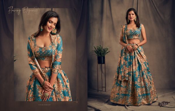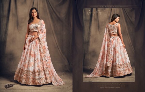 Balaji Emporium Presents Floral Vol-2 7611-7619 Series Organza With Sequence Zari Embroidery Work Lehenga Collection