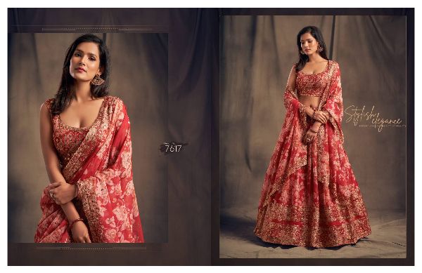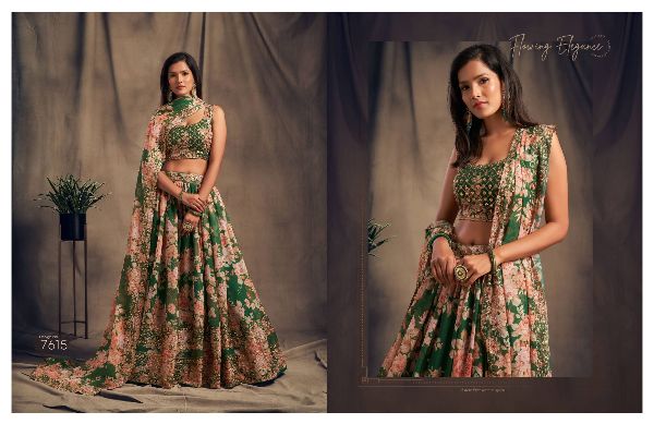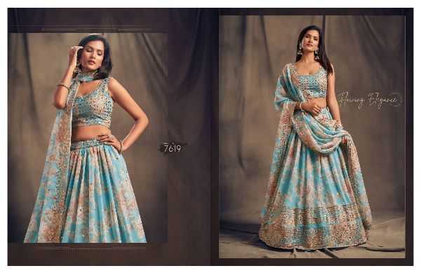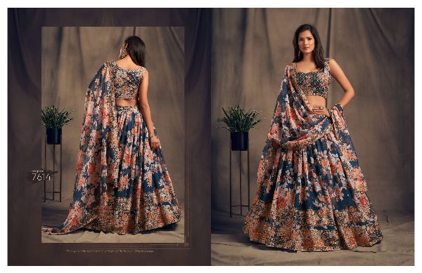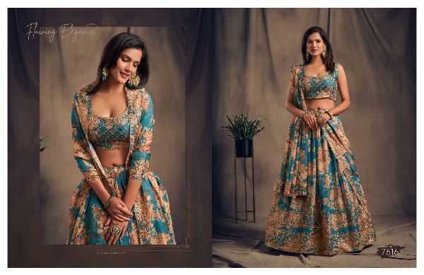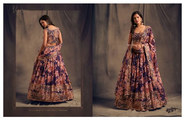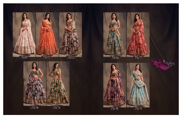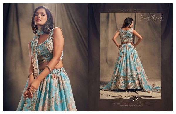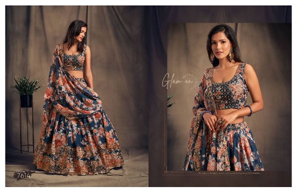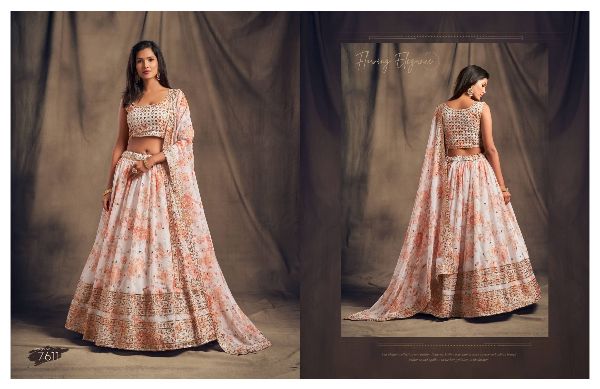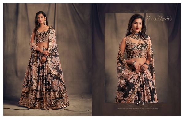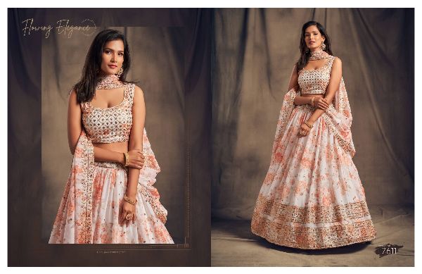 Balaji Emporium Presents Floral Vol-2 7611-7619 Series Organza With Sequence Zari Embroidery Work Lehenga Collection