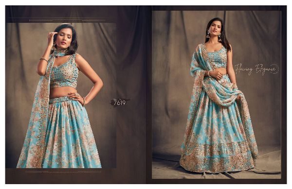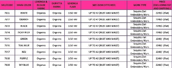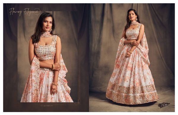 Balaji Emporium Presents Floral Vol-2 7611 To 7619 Series Organza Sequence Work Lehenga Choli Collection At Wholesale Price
