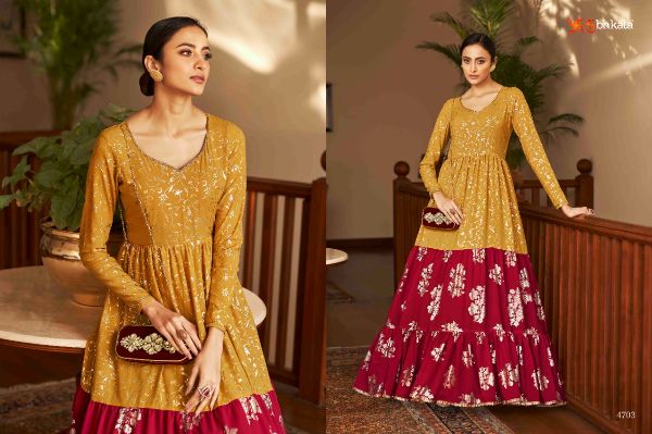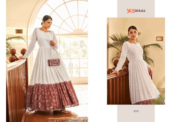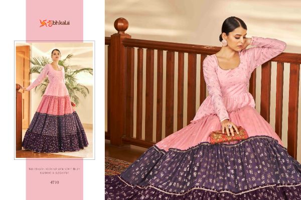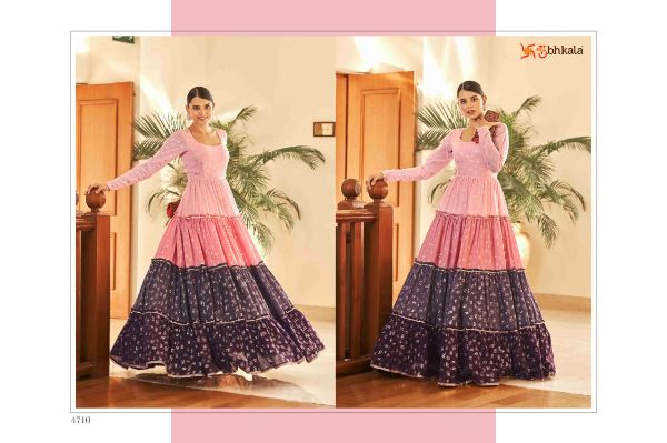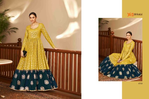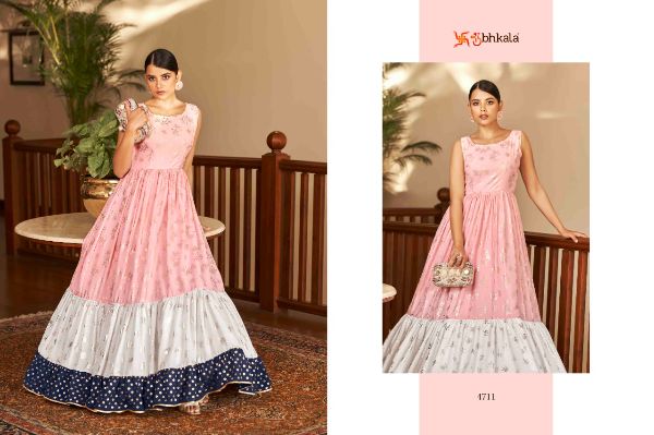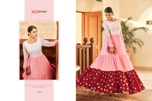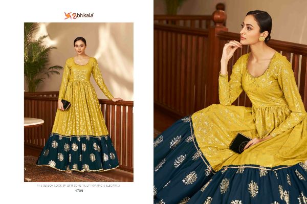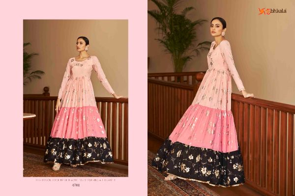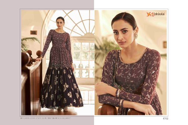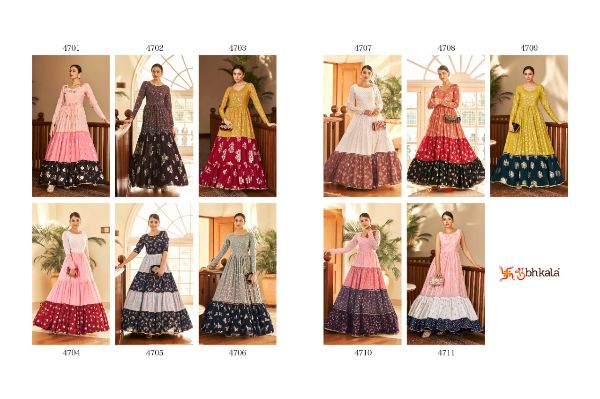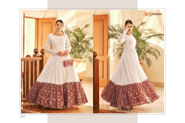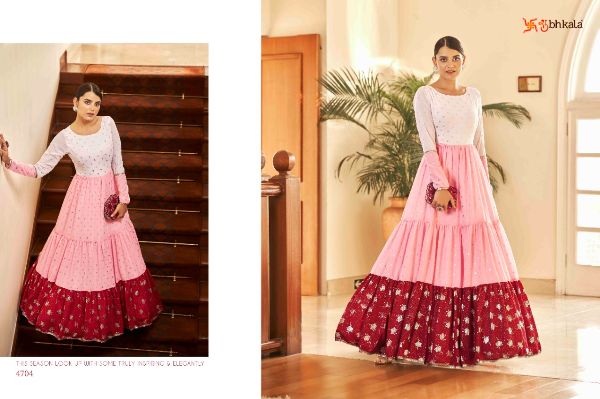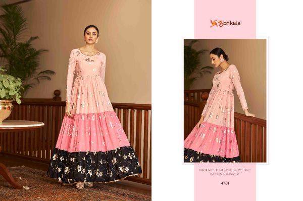 Balaji Emporium Presents Flory Vol. 18 4701-4711 Series Georgette With Metalic Foil Work Long Gown Collection