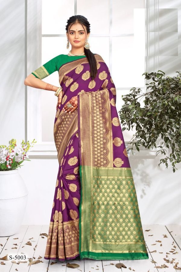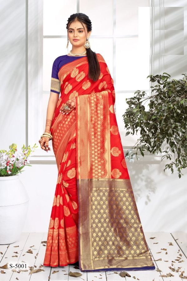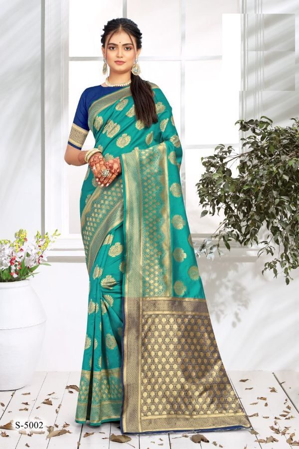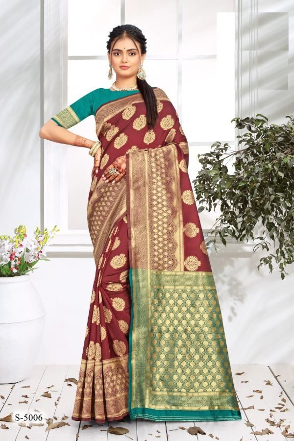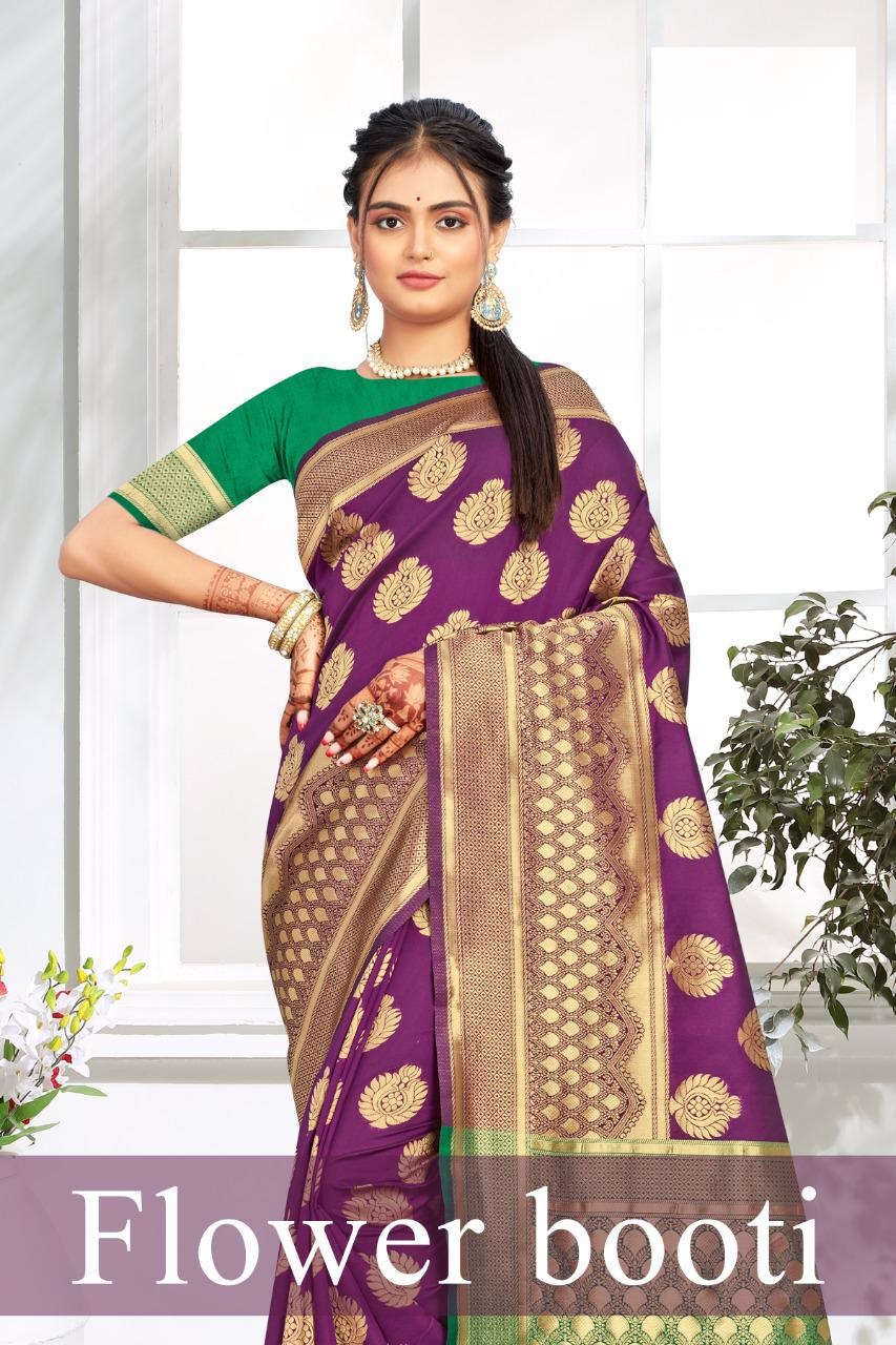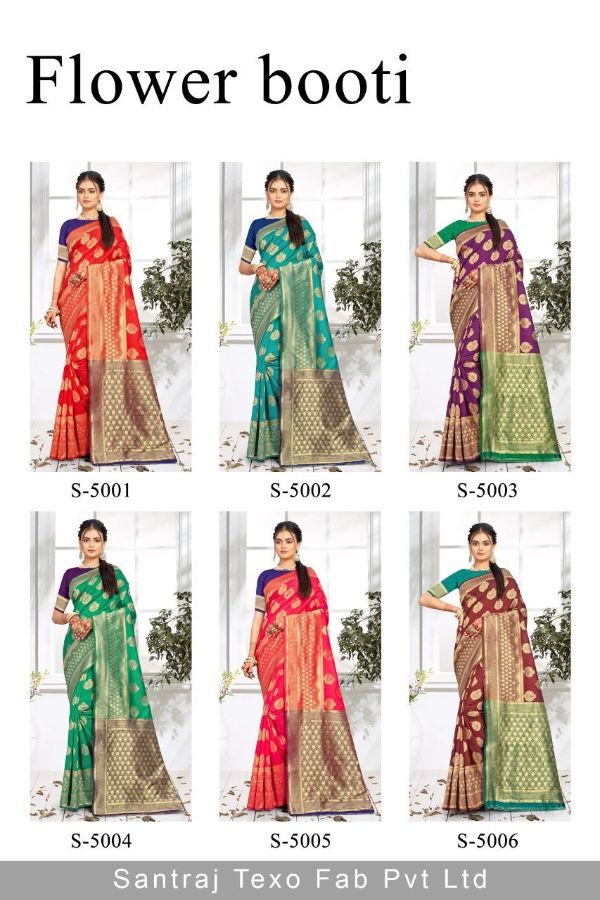 Balaji Emporium Presents Flower Booti Dno S-5001 - S-5006 Series Traditional Indian Saree Banarsi Silk At Wholesale Price