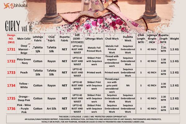 Balaji Emporium Presents Girly Vol 16 1731-1736 Series Taffeta Silk With Metalic Foil Work Lehenga Choli Collection