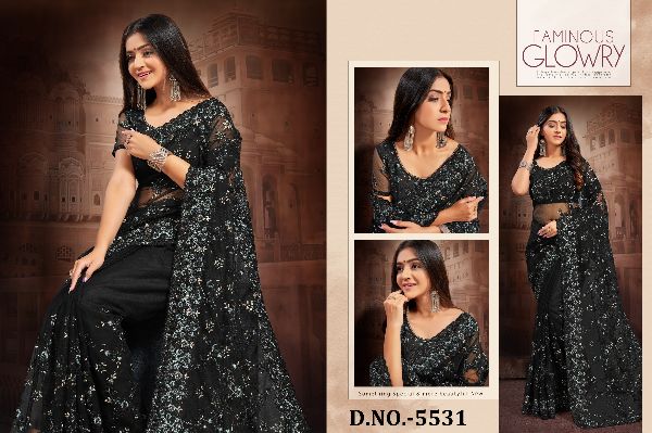Balaji Emporium Presents Glorina 5531 - 5548 Series Heavy Coding Work With Sequins Lace Broder Party Wear Saree Collection Diwali Offer