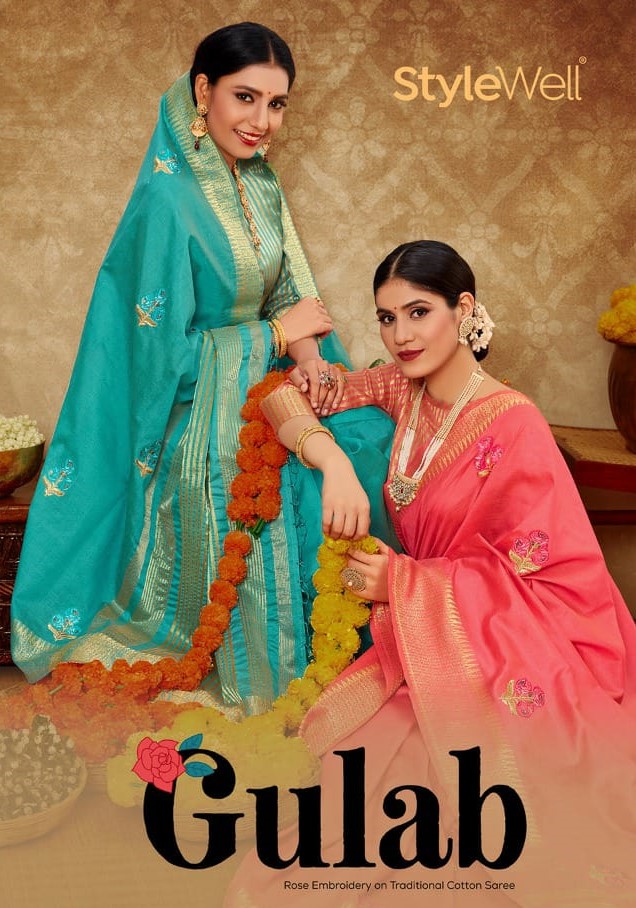 Balaji Emporium Presents Gulab 761-766 Series Rose Embroidery On Traditional Indian Cotton Sarees Collection