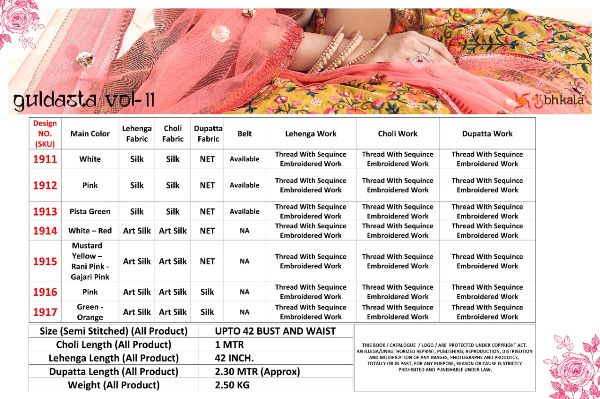 Balaji Emporium Presents Guldasta Vol-11 1911-1917 Series Silk With Thread,sequin And Embroidery Work Lehenga Collection