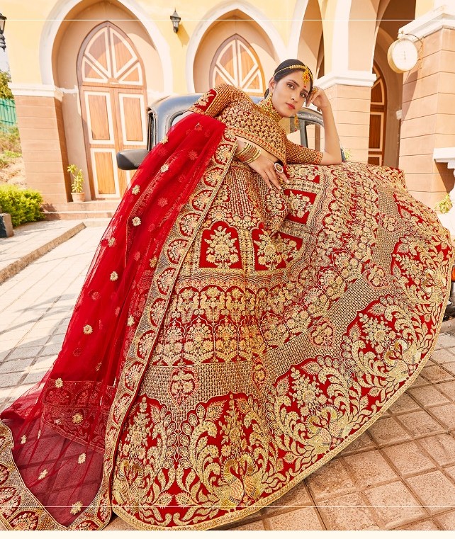 Balaji Emporium Presents Gulkand Vol 4 (red) 1301 - 1310 Series Velvet With Embroidery And Hand Work Bridal Lehenga Collection