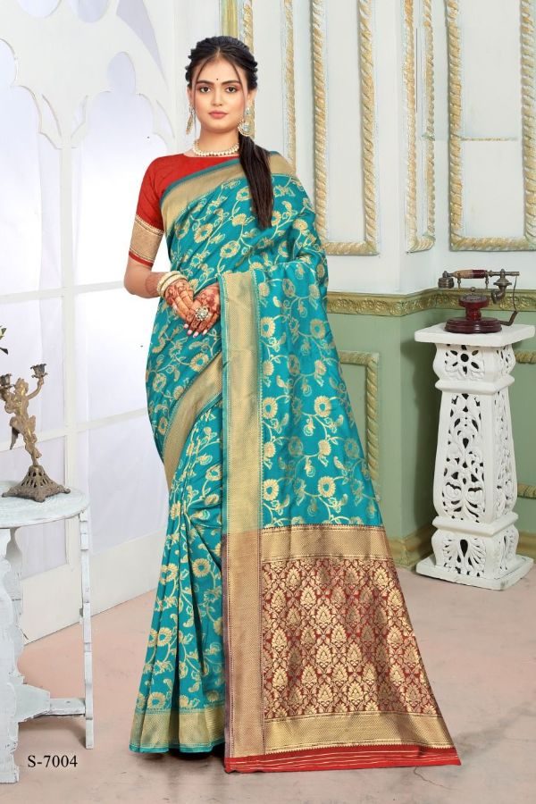 Balaji Emporium Presents Heavy Jal Dno S-7001 - S-7006 Series Indian Designer Party Wear Banarsi Silk Saree At Wholesale Price
