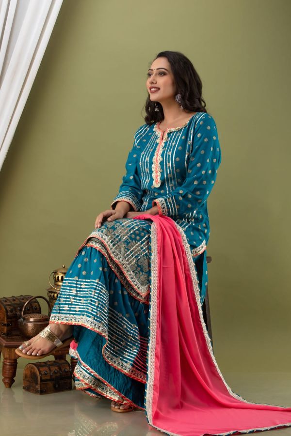 Balaji Emporium Presents Heavy Rayon Printed Kurti With Sharara Dupatta Collection