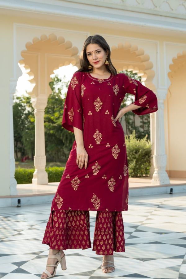 Balaji Emporium Presents Heavy Rayon With Golden Print Kurti With Sharara Collection