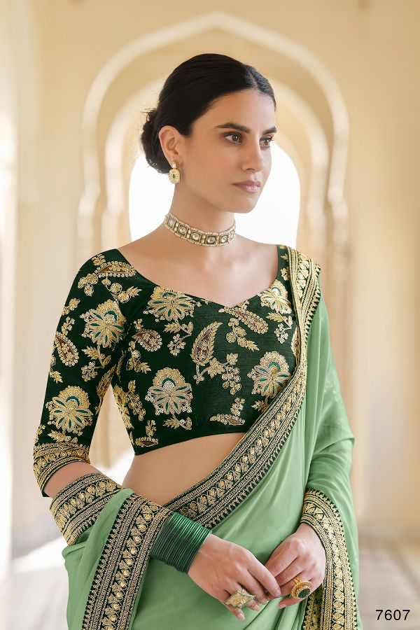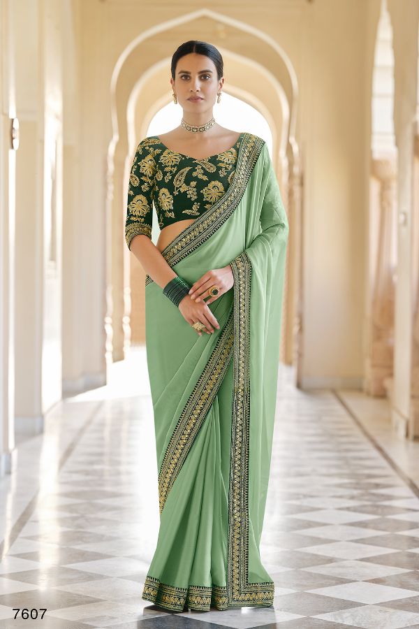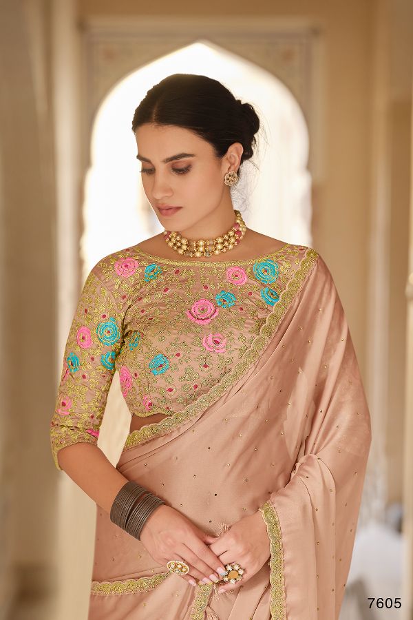 Latest Designer saree Collection. Exclusive with Foil & Thread Embroidery Work gives a Fashionable Look, High sensed style and luxury makes you ready for envious glazes and very rich & Royal in the Party, Function, Event etc.