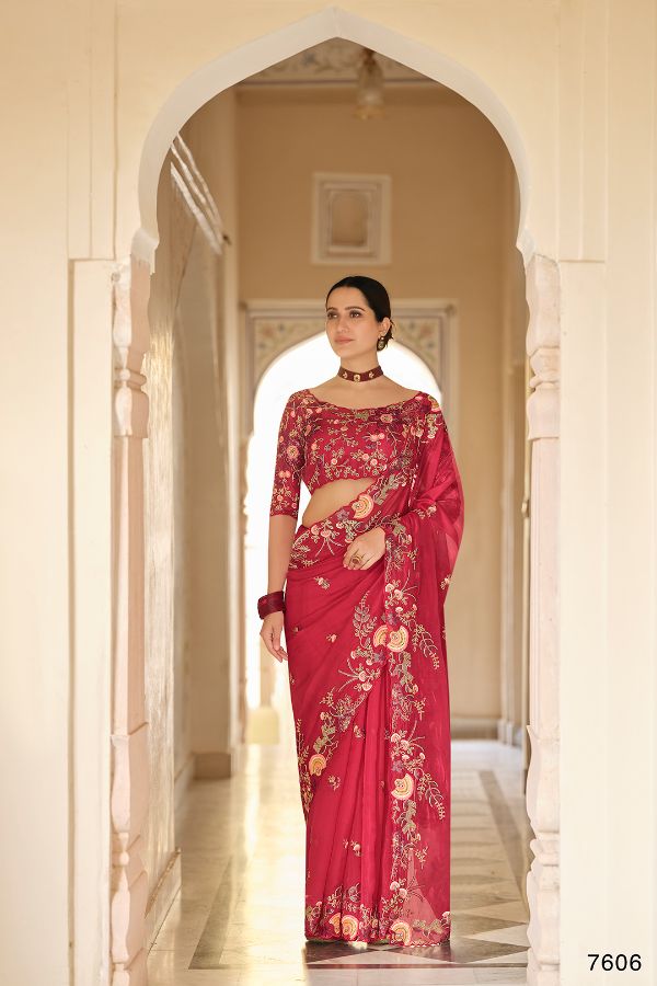 Balaji Emporium Presents Imperial -2 7601-7612 Series Beautiful Organza Party Wear Saree Collection