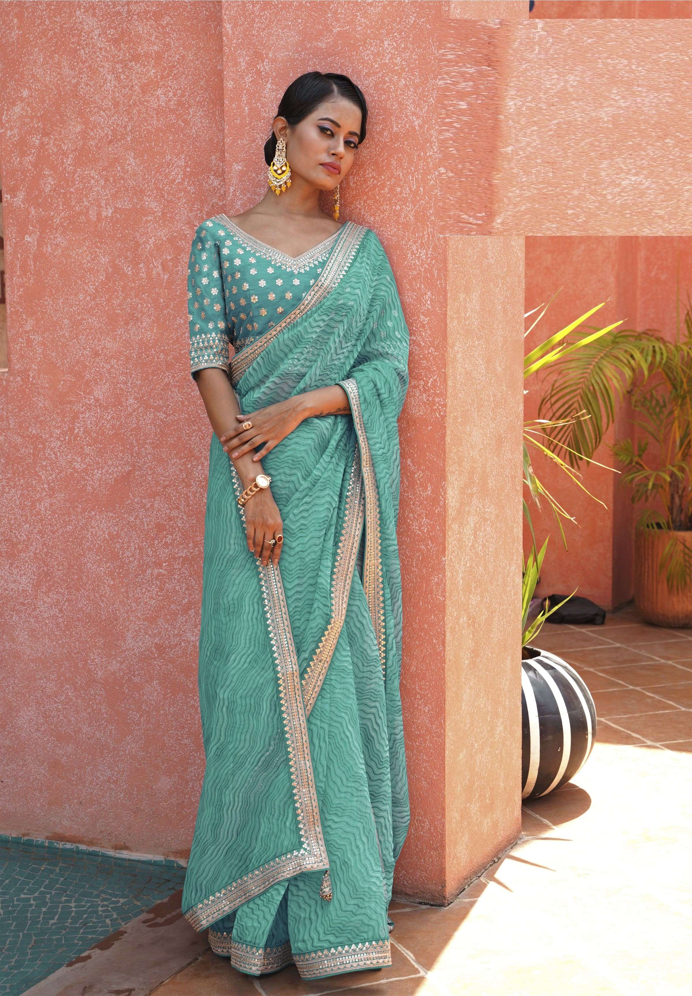 FABRIC: Saree: Organza || Blouse: Raw Silk