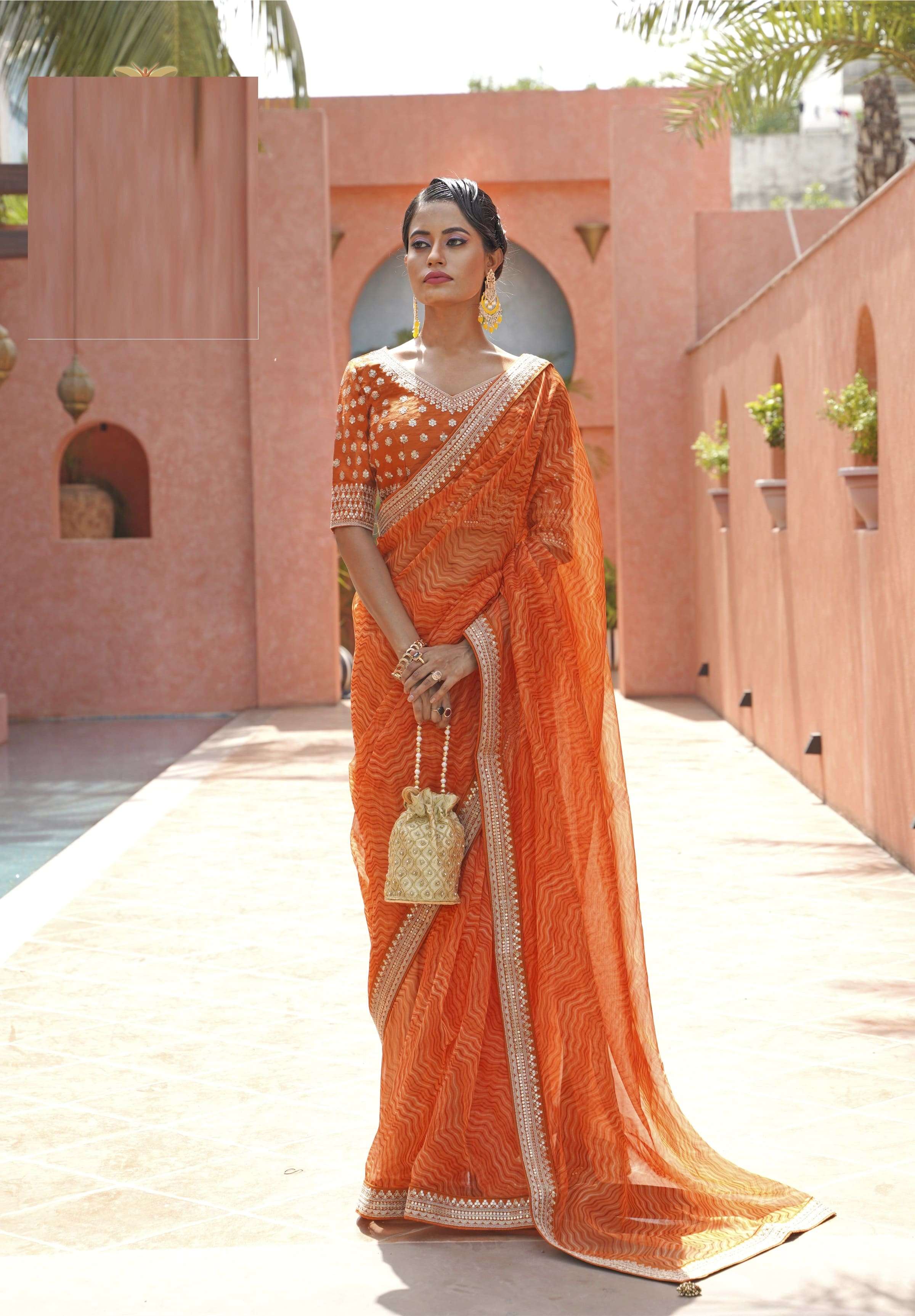 STYLE: Eye-catching Women Designer Organza Saree comes with Unstitched Blouse Piece in Rich look.
