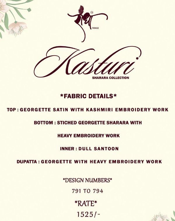 Balaji Emporium Presents Kasturi 791 To 794 Series Georgette Kashmiri Work Salwar Suits At Wholesale Price