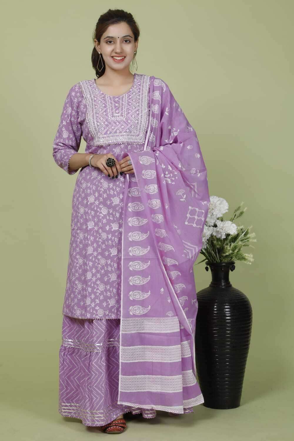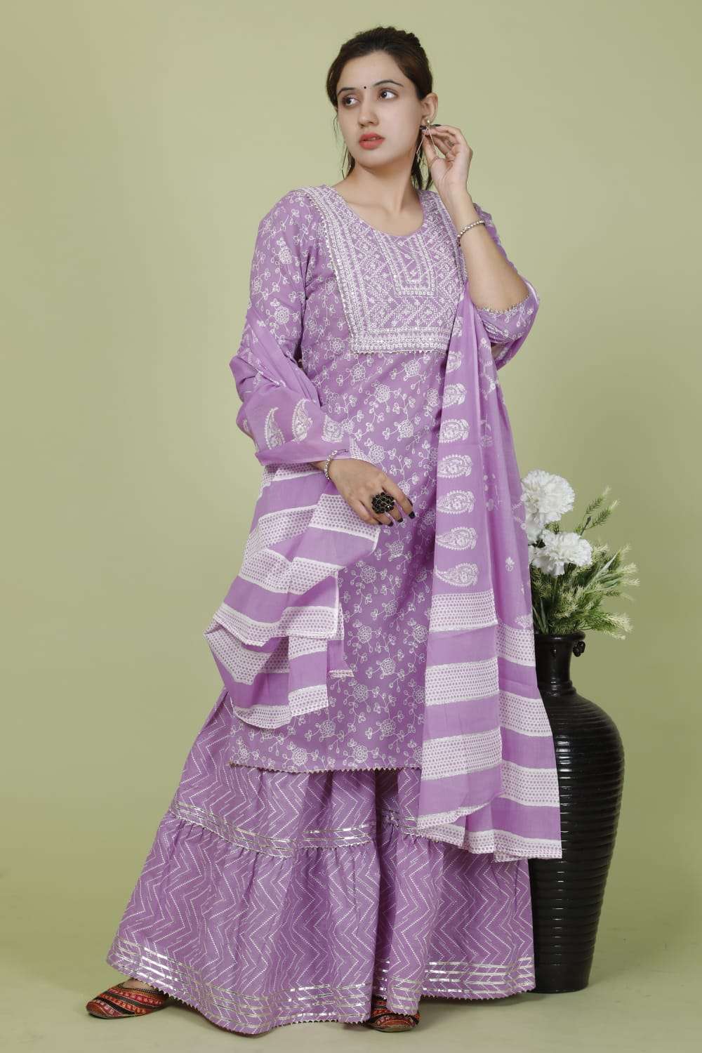 BALAJI EMPORIUM PRESENTS LAVENDER SHARAR GAHARAR KURTI PLAZZO SUIT SET PARTY TRADITIONAL ETHNIC FESTIVE WEAR COLLECTION 495U