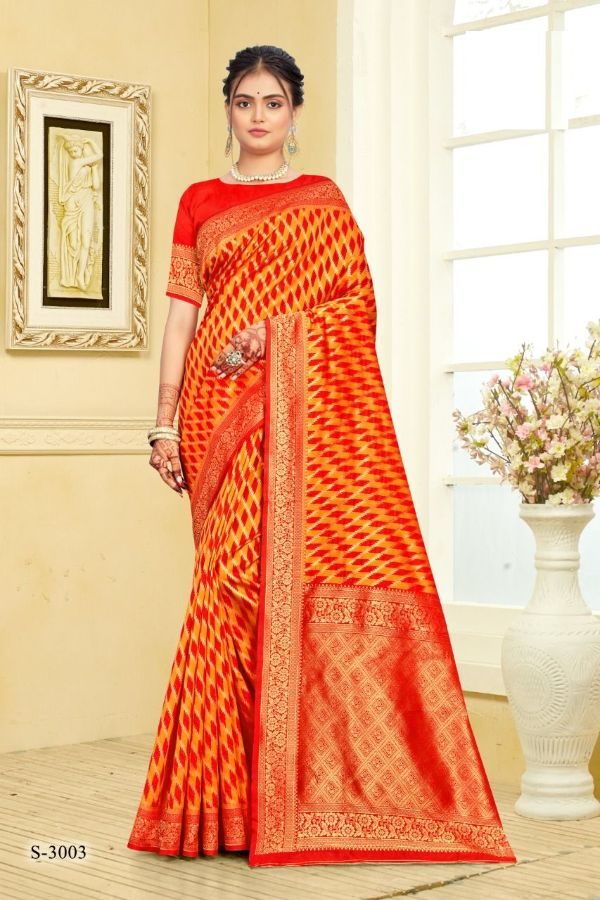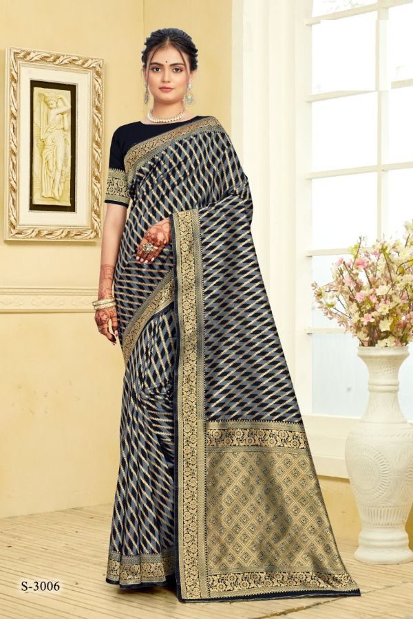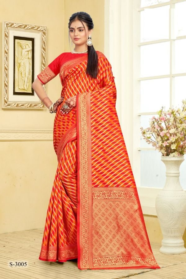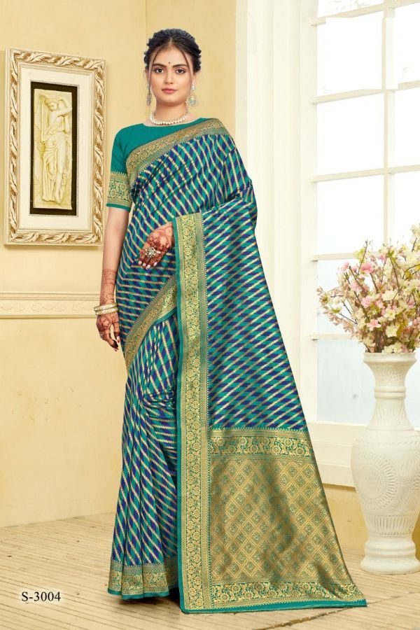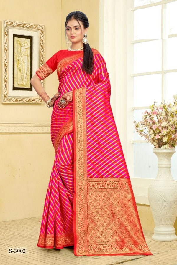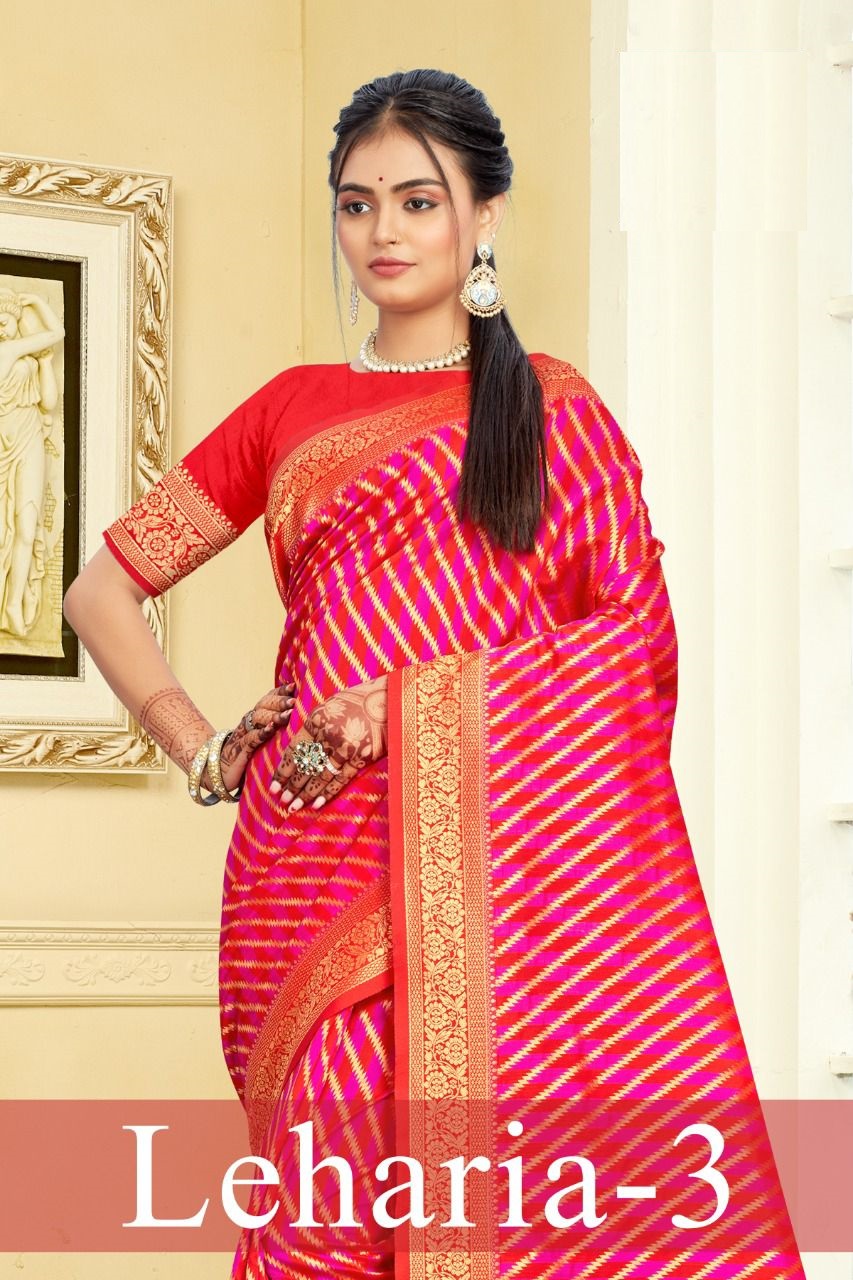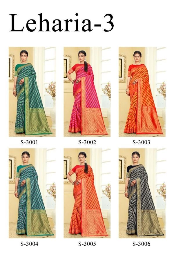 Balaji Emporium Presents Leharia-3 Dno S-3001 - S-3006 Series Designer Indian Party Wear Banarsi Silk Saree At Wholesale Price