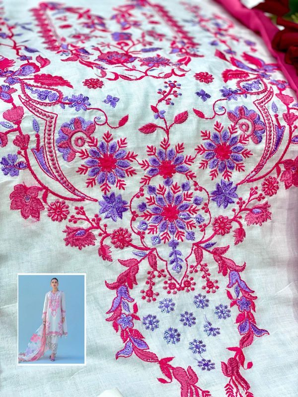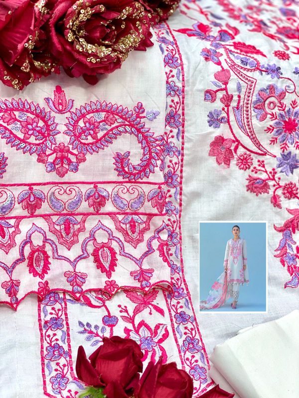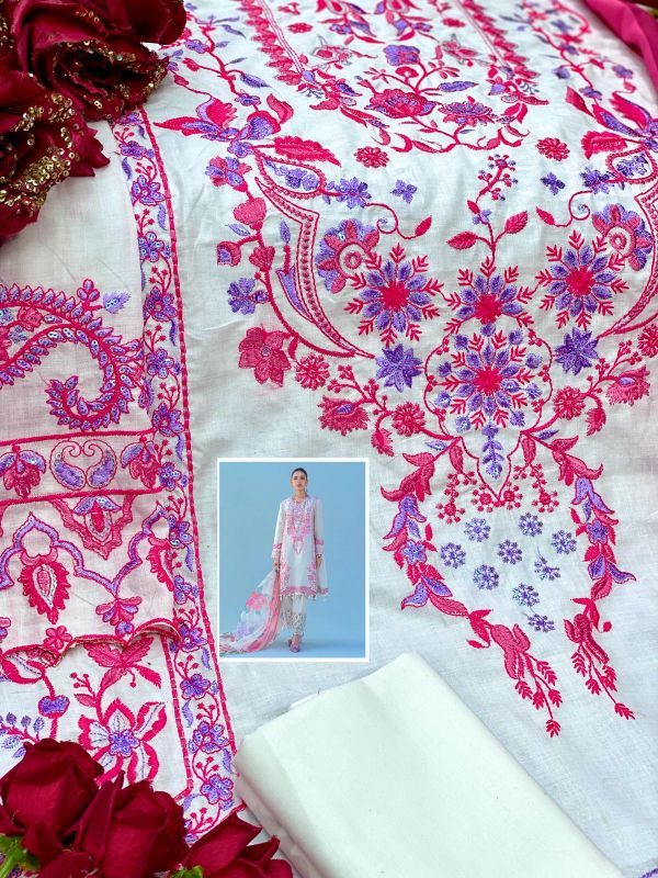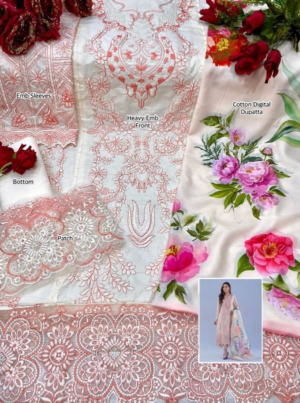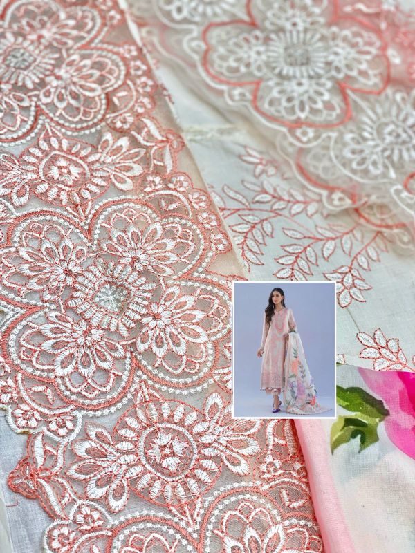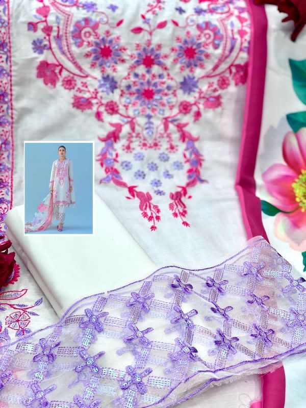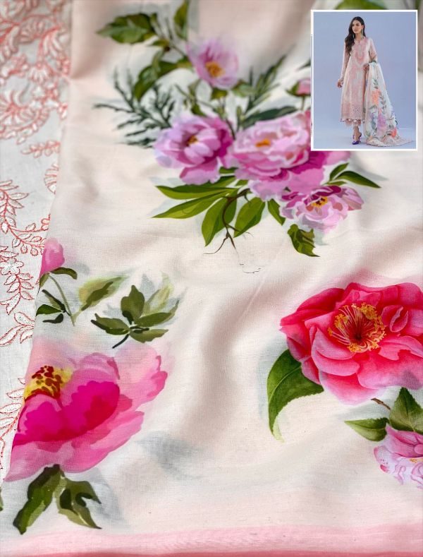 Fabric: TOP : PURE CAMBRIC COTTON WITH SELF EMBROIDERY