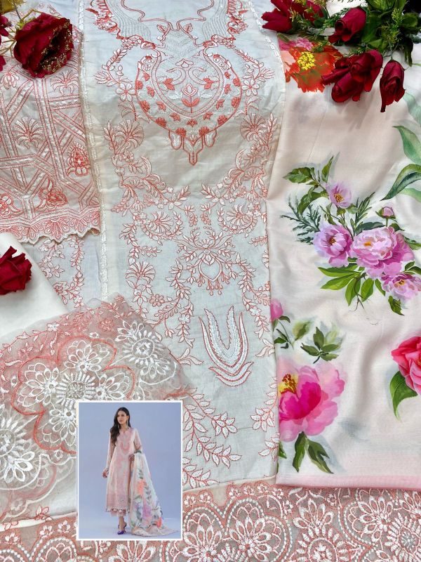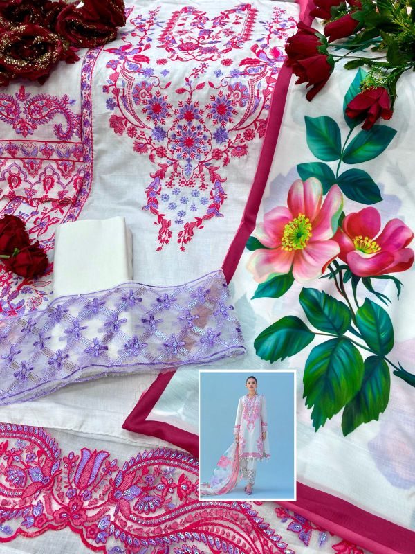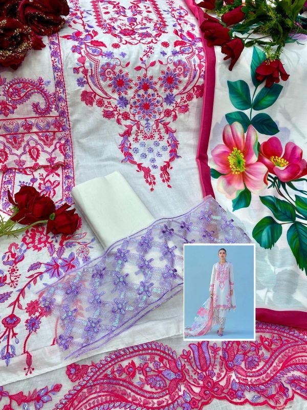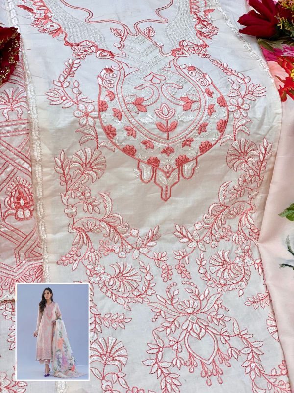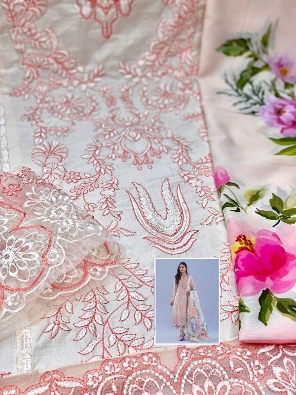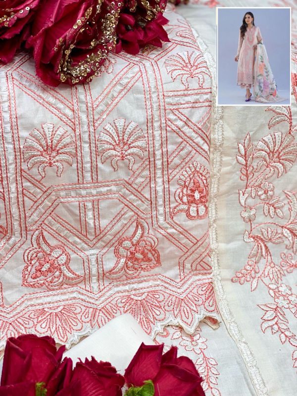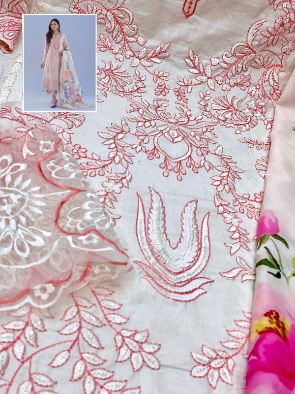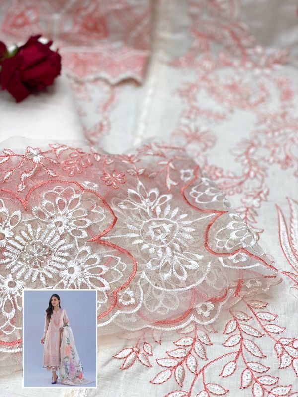 Fabric: TOP : PURE CAMBRIC COTTON WITH SELF EMBROIDERY
