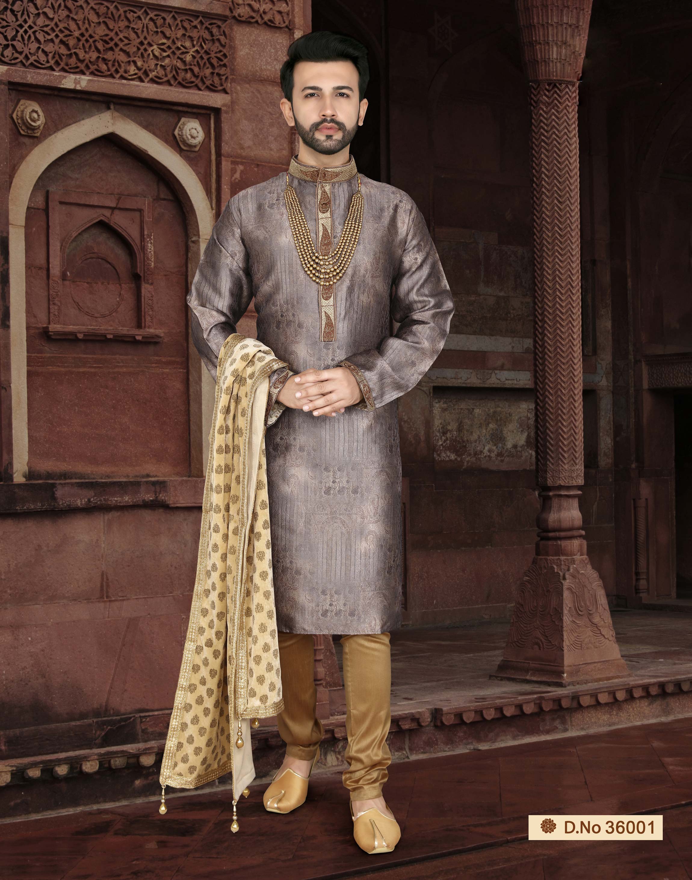 Latest Designer mens wear Collection. Exclusive with Foil & Thread Embroidery Work gives a Fashionable Look, High sensed style and luxury makes you ready for envious glazes and very rich & Royal in the Party, Function, Event etc.