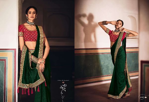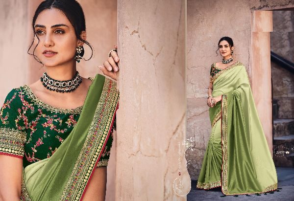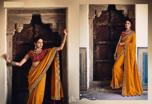 Latest Traditional Wear Saree Collection. Exclusive with Embroidery Work gives a Fashionable Look, High sensed style and luxury makes you ready for envious glazes and very rich & Royal in the Party, Function, Event etc.
