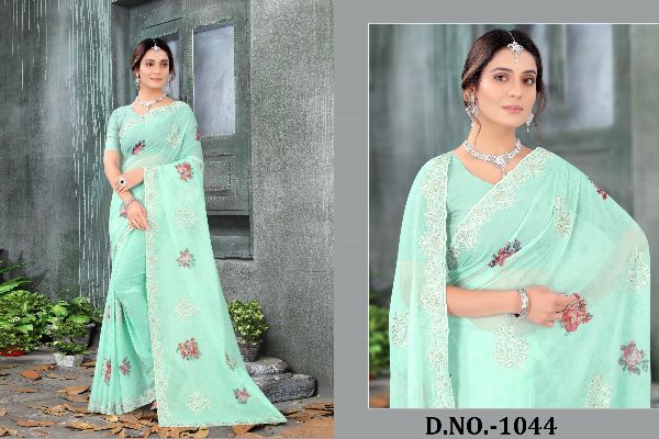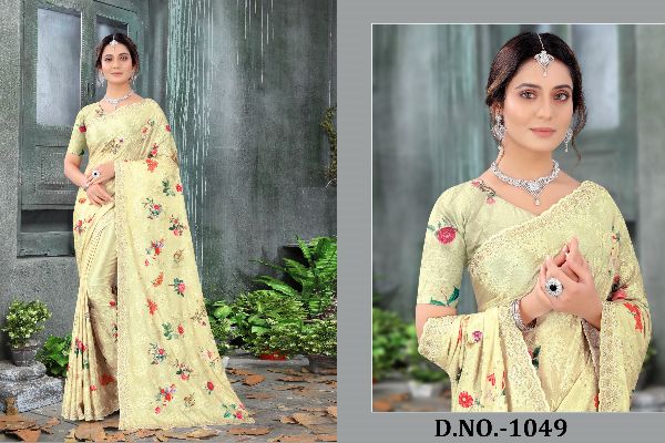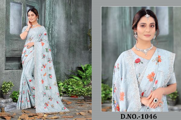 Latest Designer saree Collection. Exclusive with Foil & Thread Embroidery Work gives a Fashionable Look, High sensed style and luxury makes you ready for envious glazes and very rich & Royal in the Party, Function, Event etc.